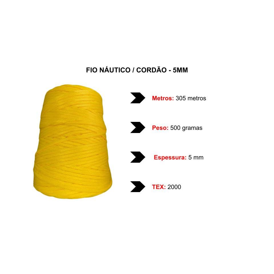 Fio Náutico Cordão 500g 5mm 305m Croche Trico Macrame