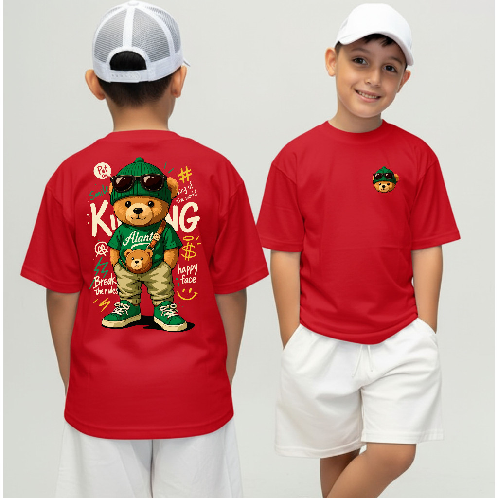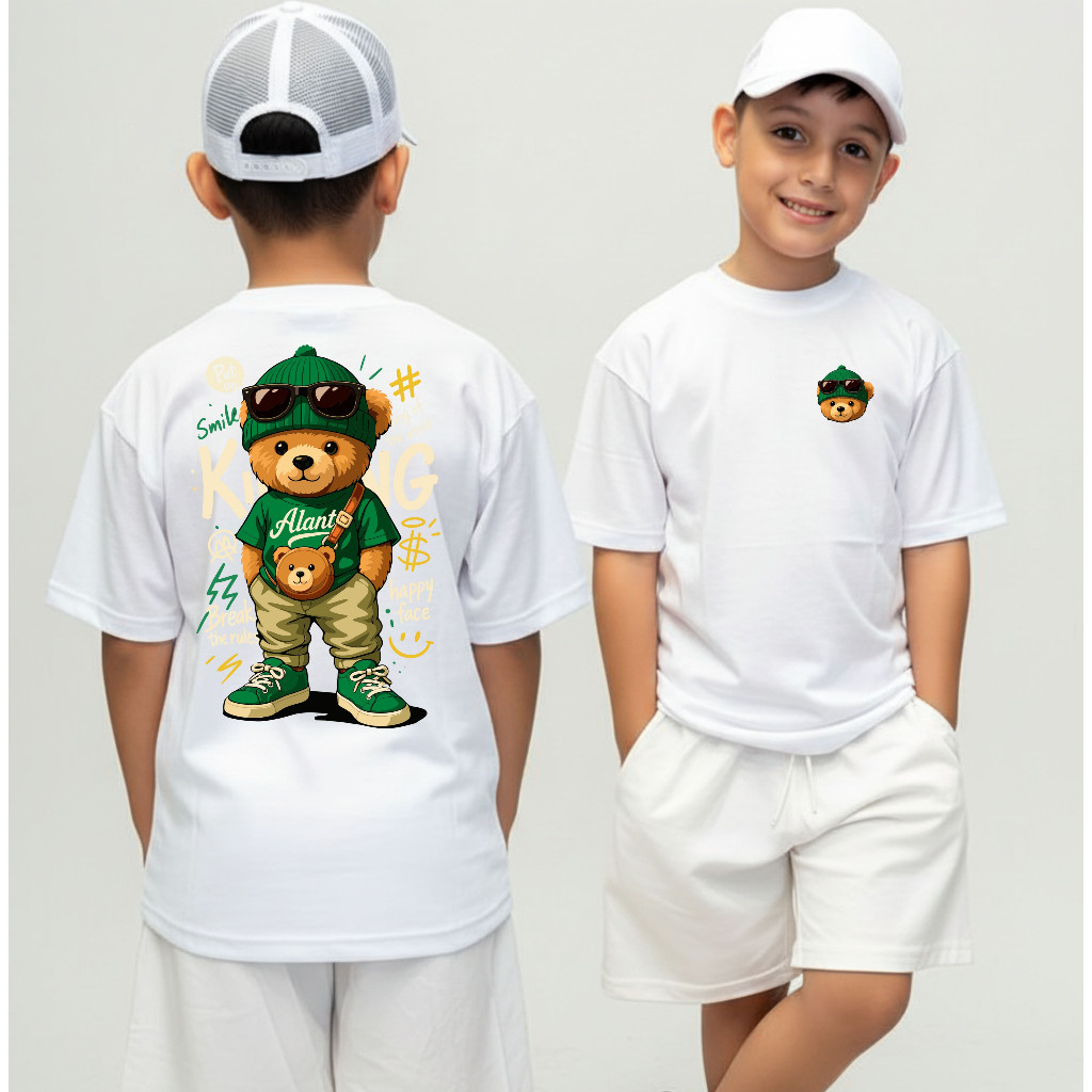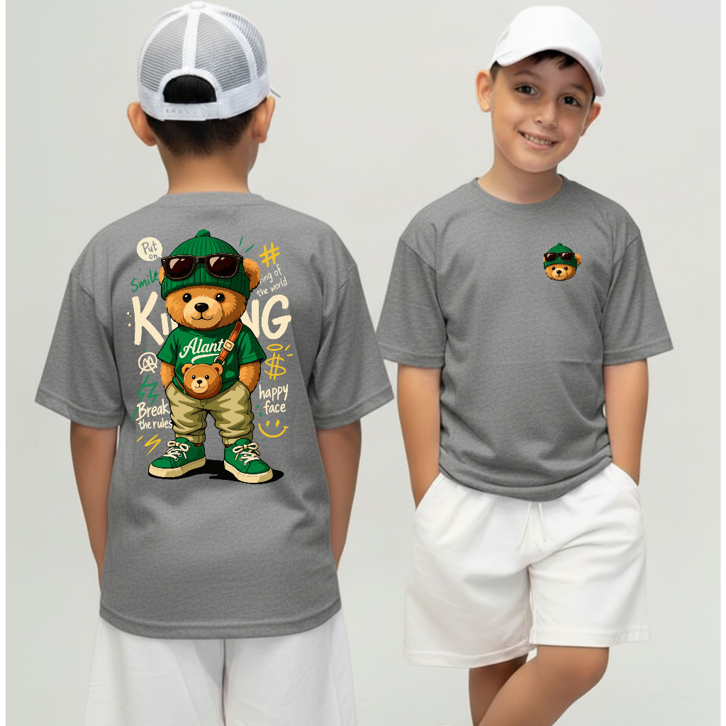 Camiseta Infantil Urso King Streetwear Malha 30.1 100% Algodão Camisa Juvenil Estilosa