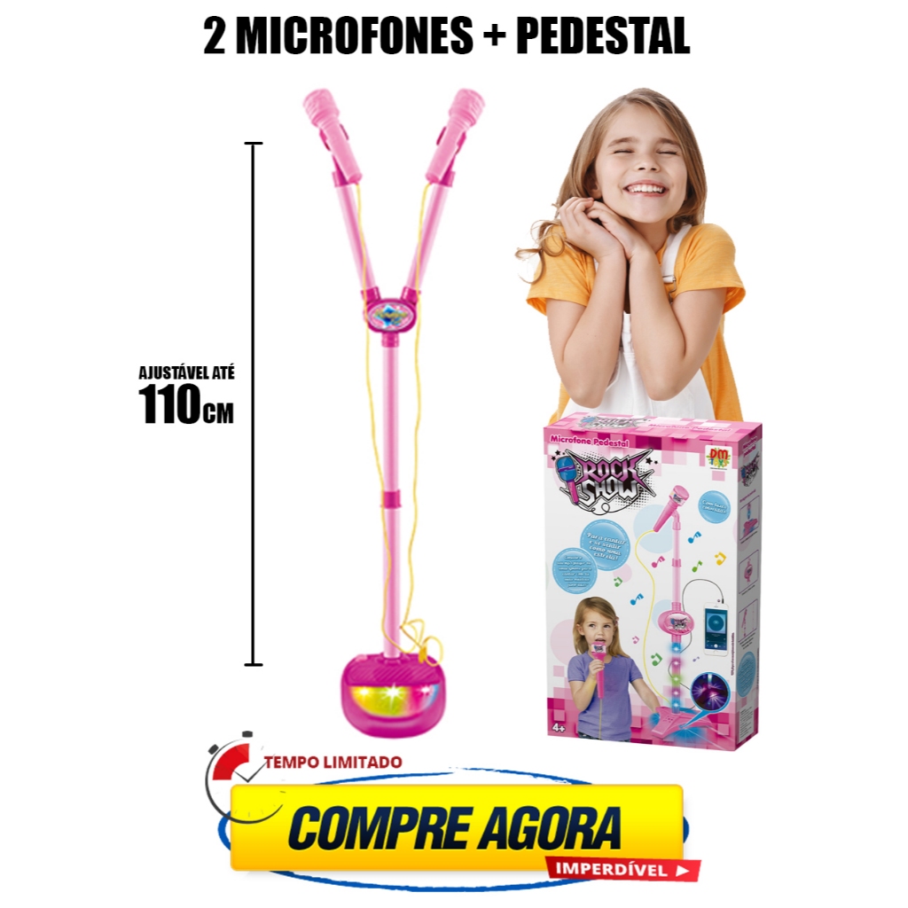 KARAOKÊ DUPLO COM PEDESTAL 2 MICROFONES INFANITL VOZ SOM LUZ BRINQUEDO CRIANÇA CONECTA CELULAR MENINA MICROFONE INFANTIL