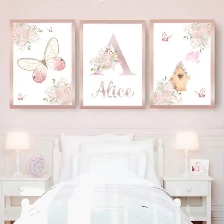 kit 3 peças quadros decorativos quarto menina bebe tamanho 20x30