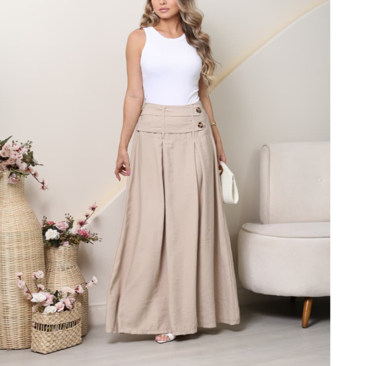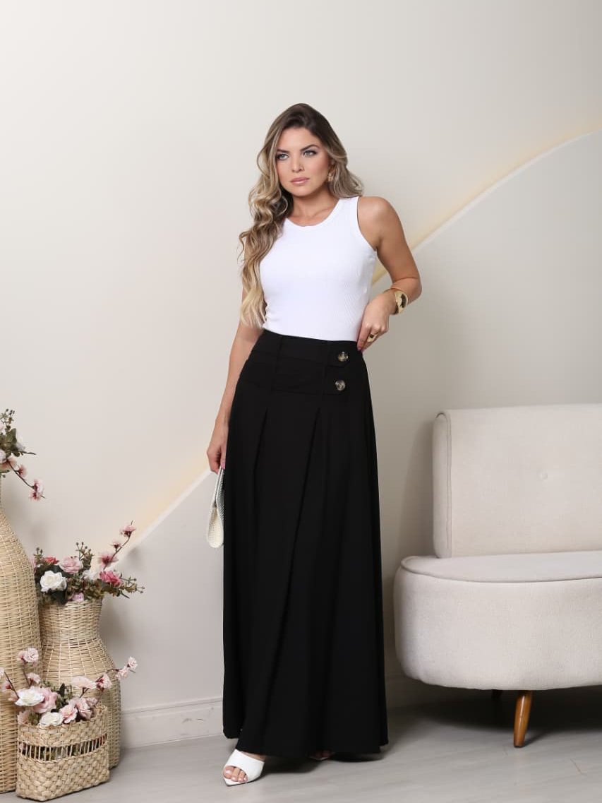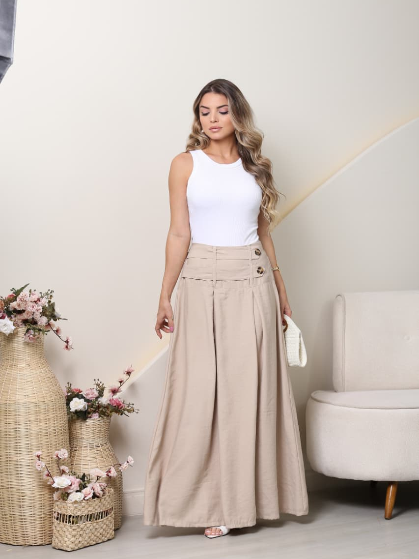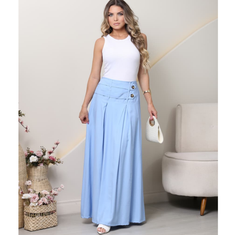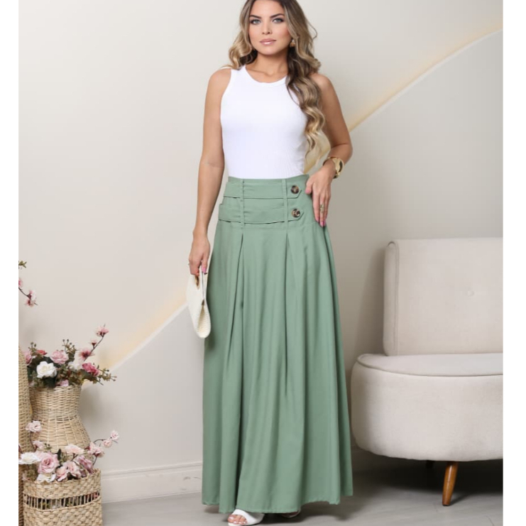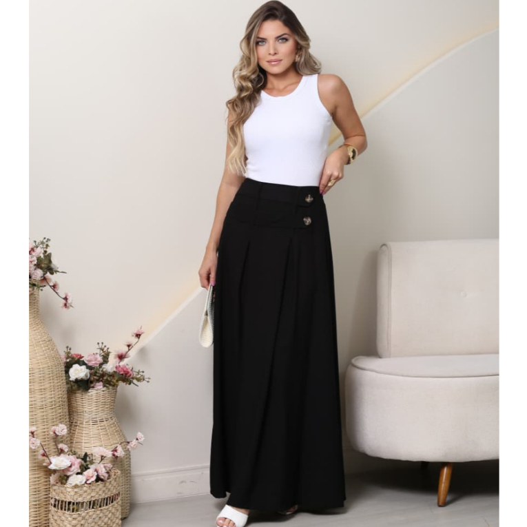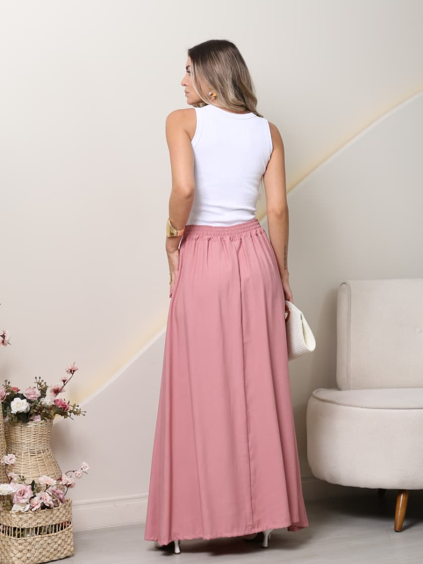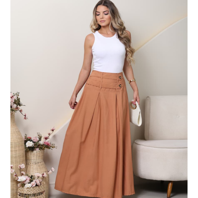 SAIA LONGA FEMININA CINTURA ALTA COM ELASTICO NAS COSTAS