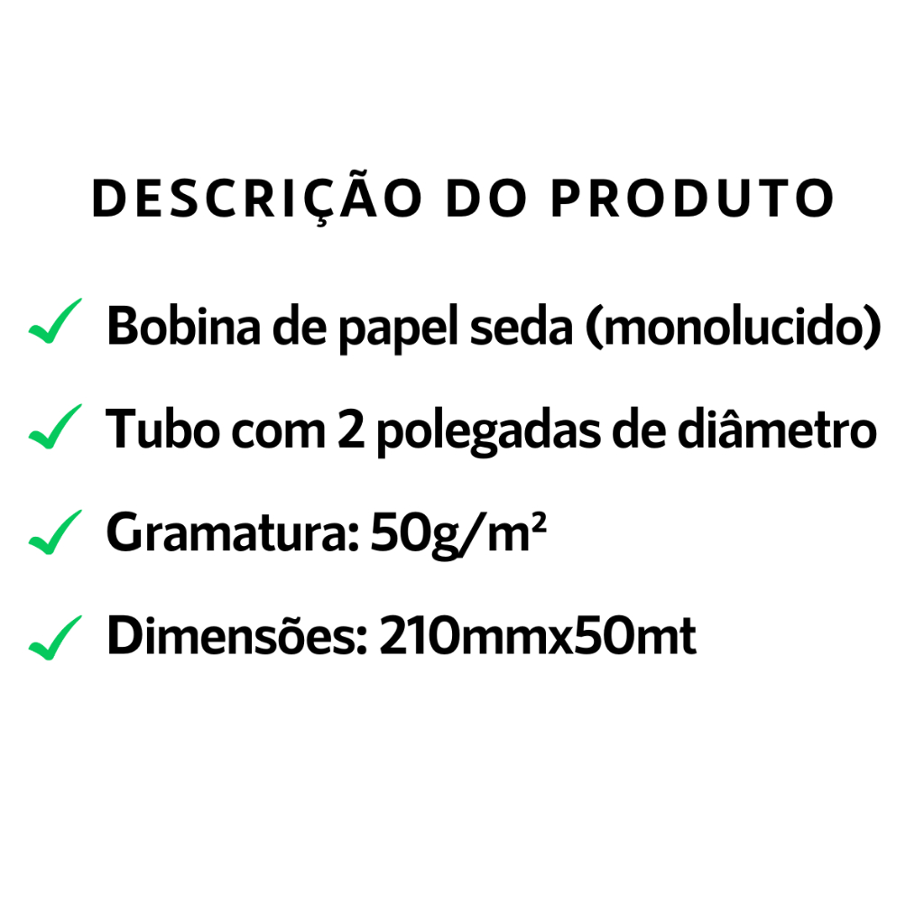 Bobina Papel Seda A4 210mmX50m 50g para impressora de pequeno formato