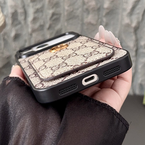 Marca De Moda De Luxo Etiqueta Dourada Slot Para Cartão Capa De Couro iPhone 17 16 15 14 13 12 11 Pro Max Plus