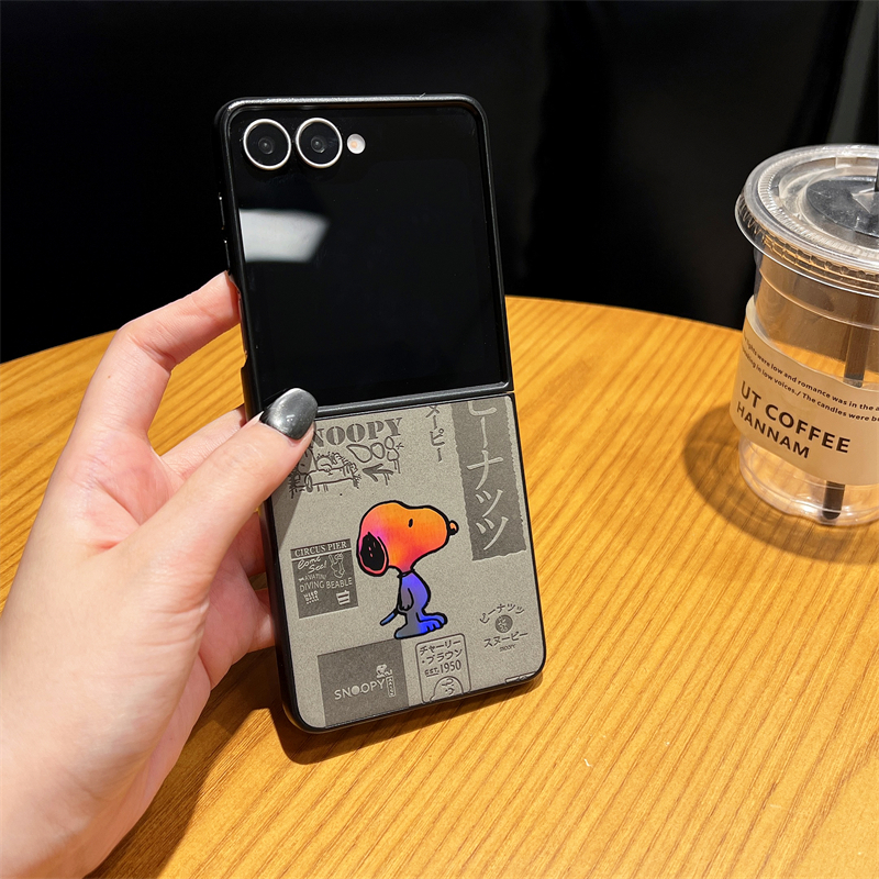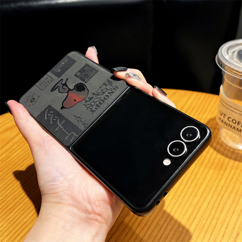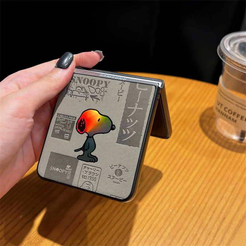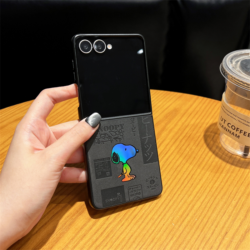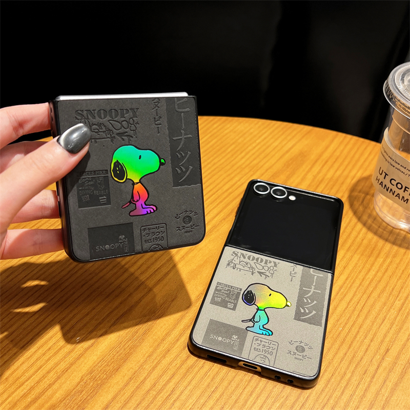 [Snoopy Laser Em Relevo] Para Samsung Galaxy Z Flip 7 6 5 4 Capa De Telefone Com Tela Dobrável De Couro De Luxo