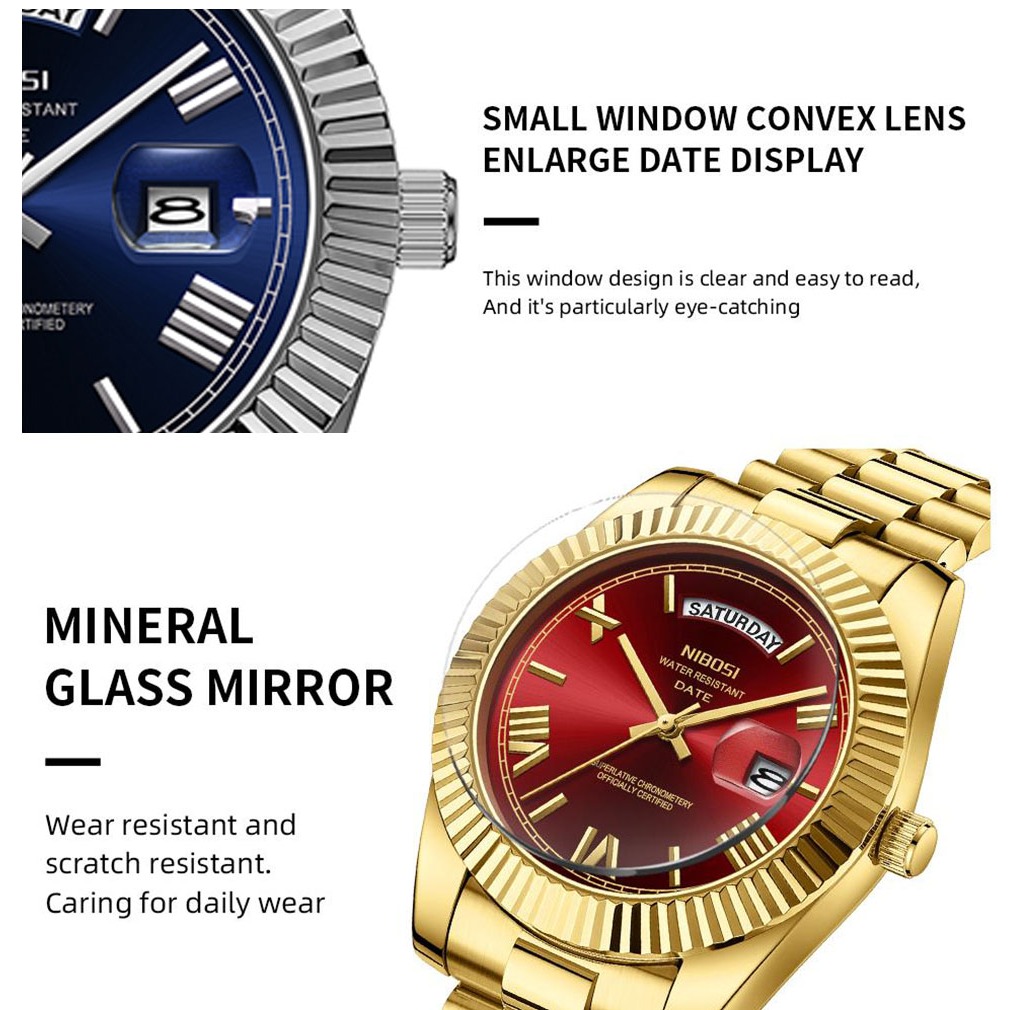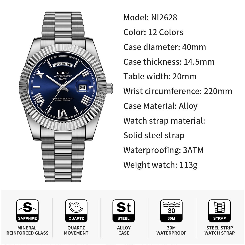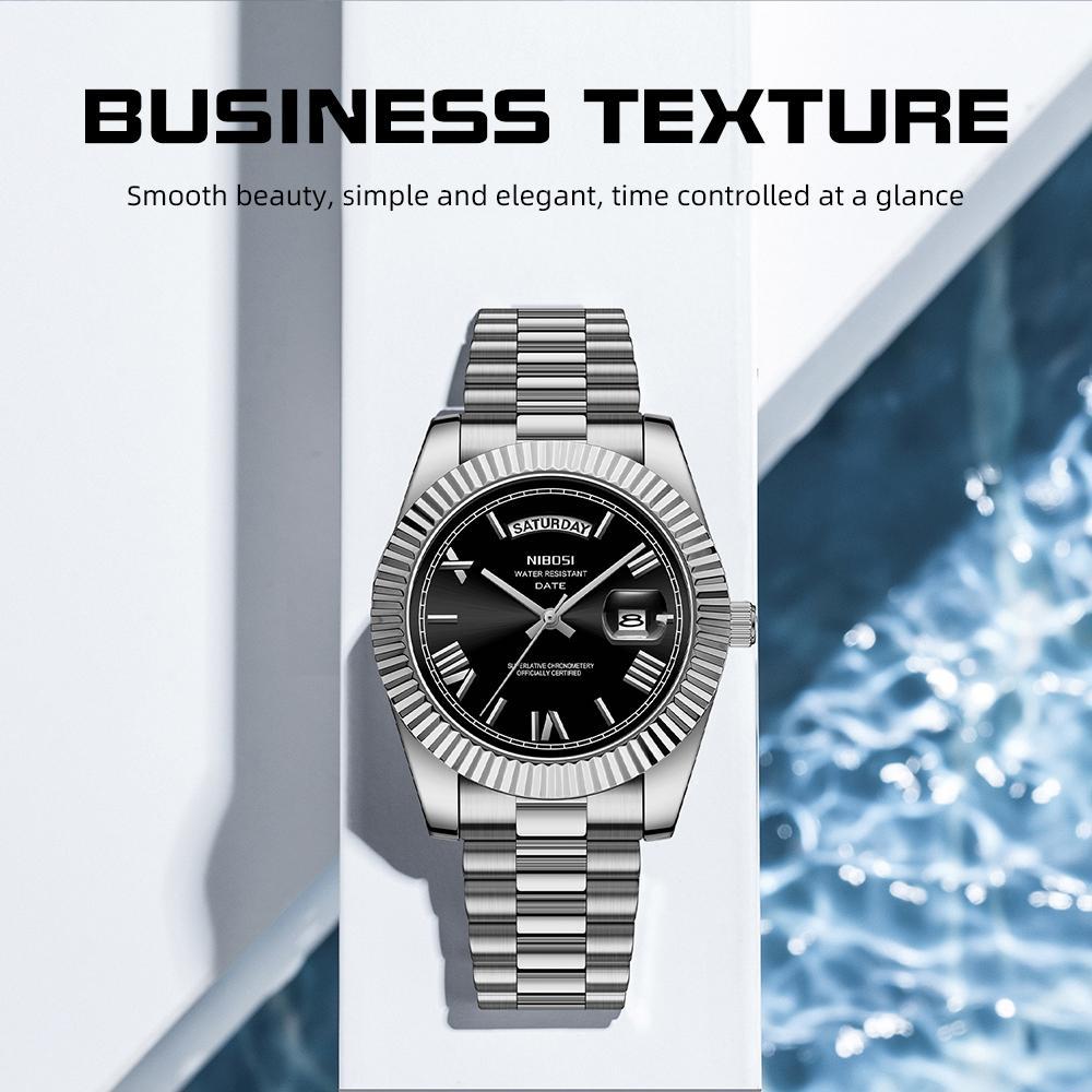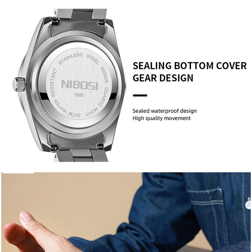 NIBOSI Relógio masculino Relógio à prova d'água original Relógio de quartzo com calendário em aço inoxidável 2628