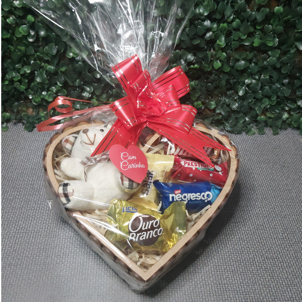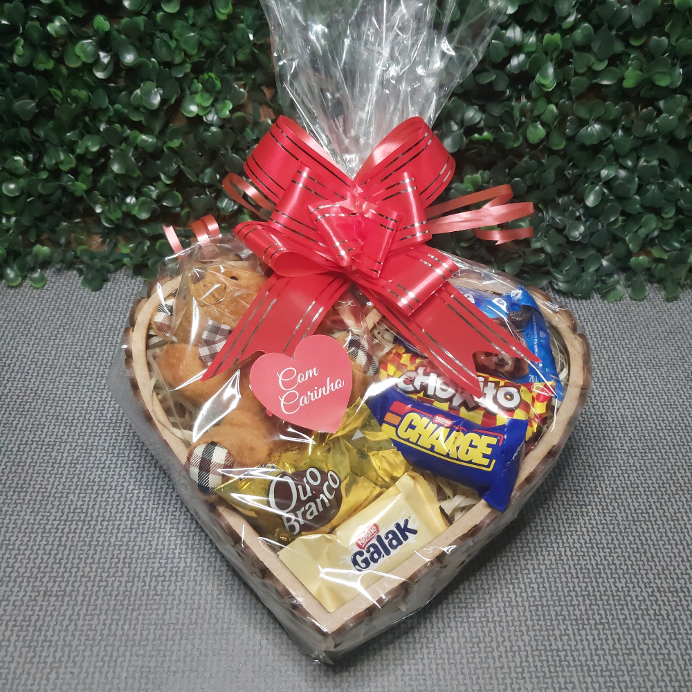 Cesta Coração de Chocolate + Chaverinho para Páscoa, Aniversário, Mães, Namorados, Presente para Amigo, Amiga
