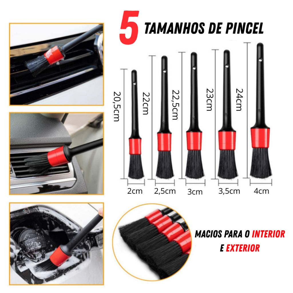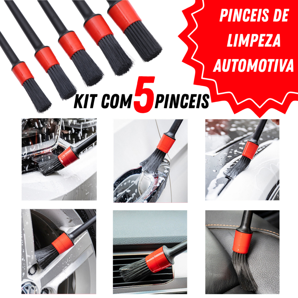 Kit Pincel Automotivo Detalhamento Conjunto 5 Peças Limpeza Automotiva Jogo 5 Peças Higienização