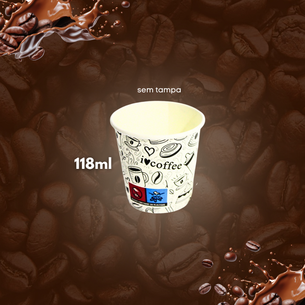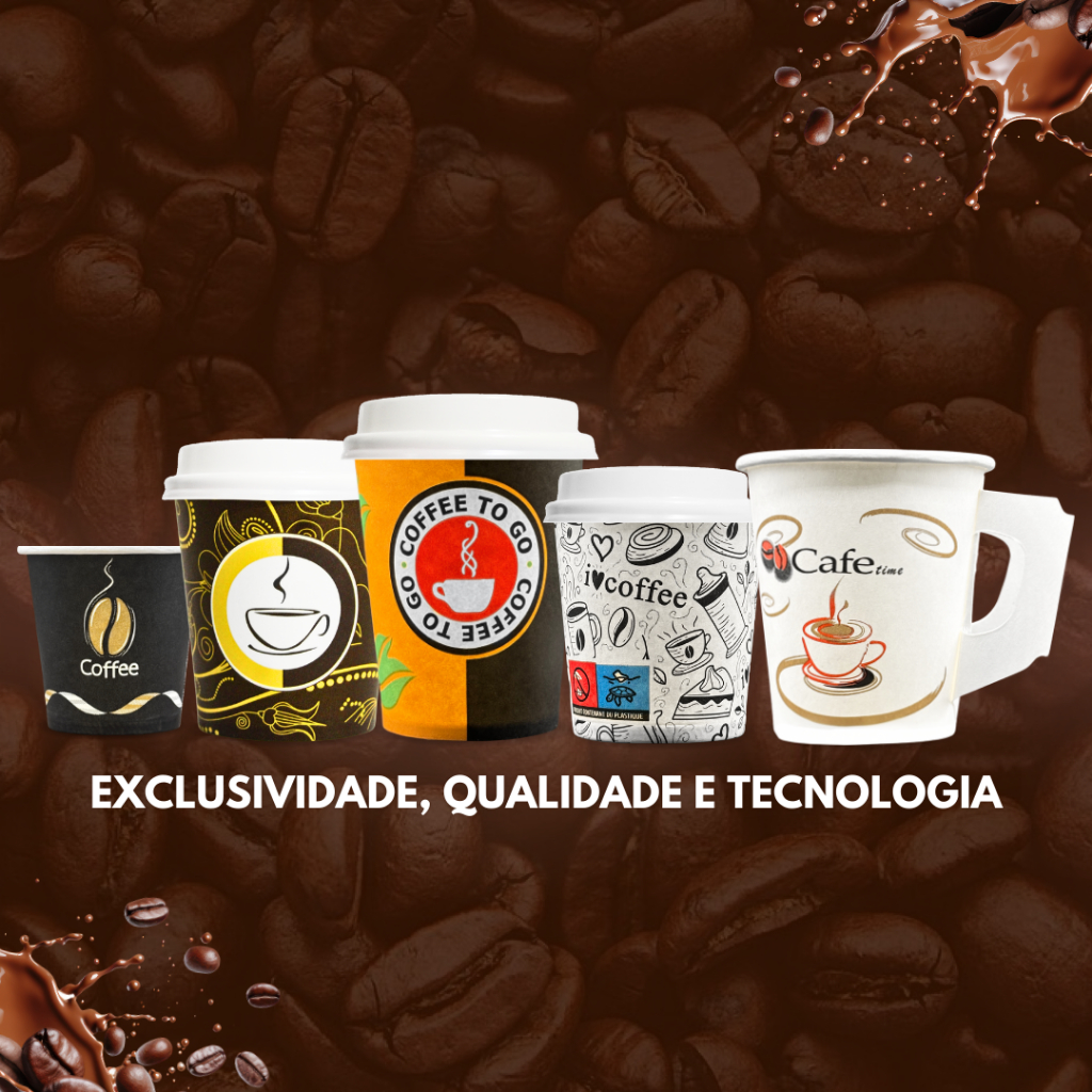 100 copo de papel Biodegradável impresso CHÁ CAFÉ c/ tampa opcional PROVITA