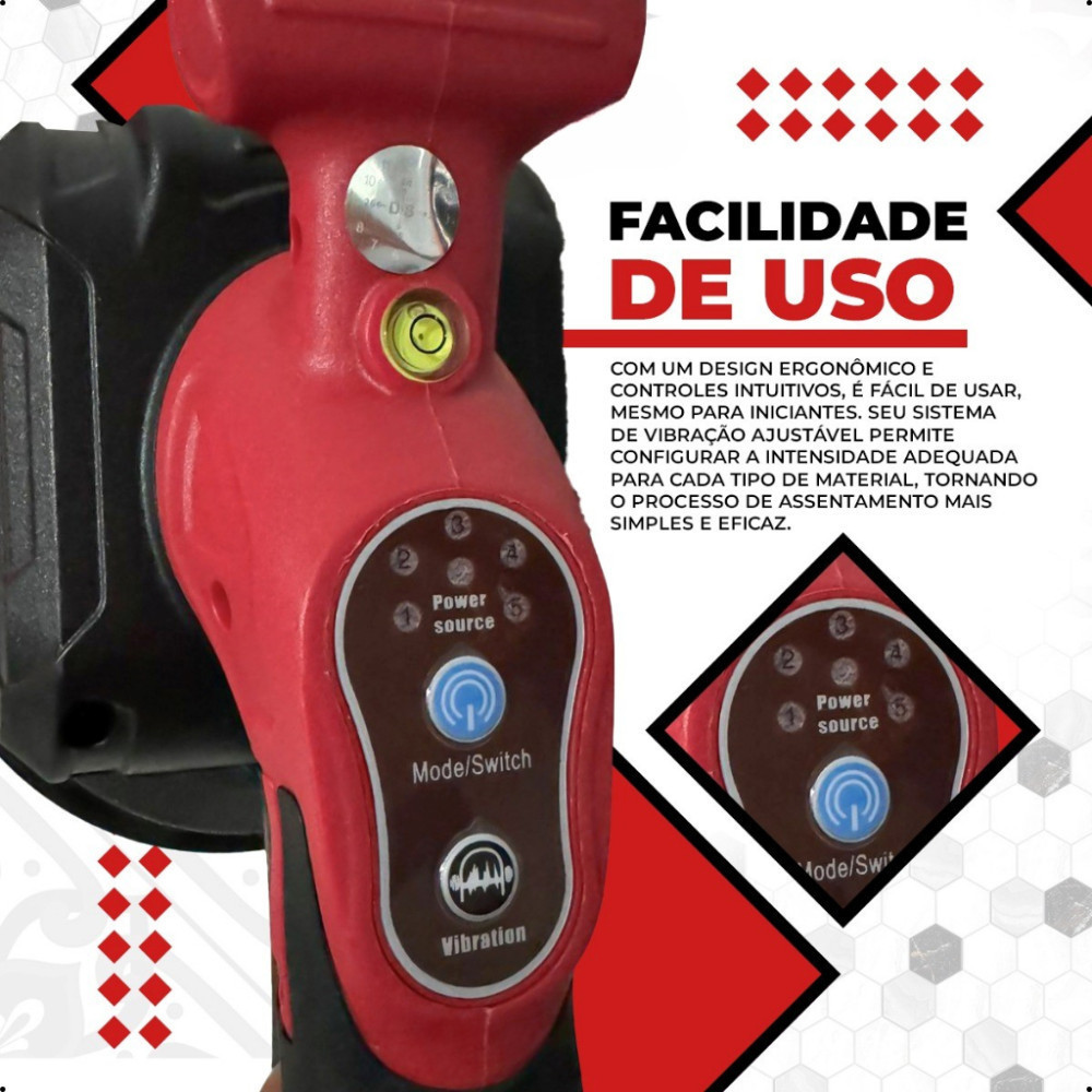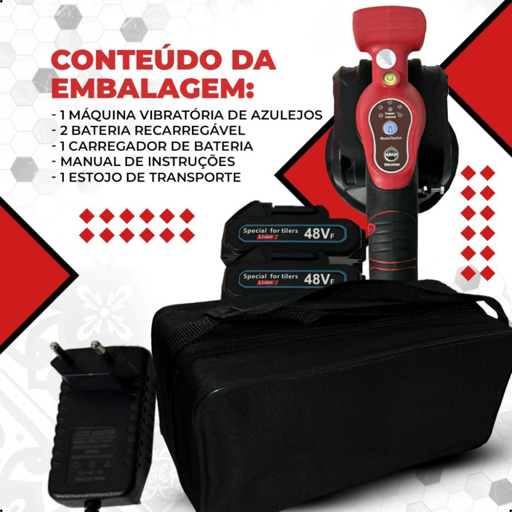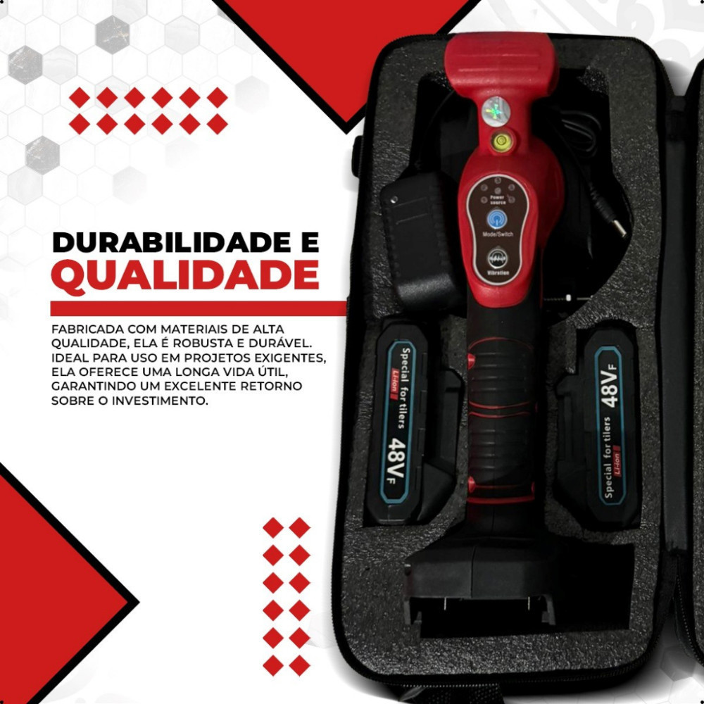 Maquina Vibratória Para Assentar Porcelanato Ventosa 2 Baterias 48v + Estojo De Traansporte