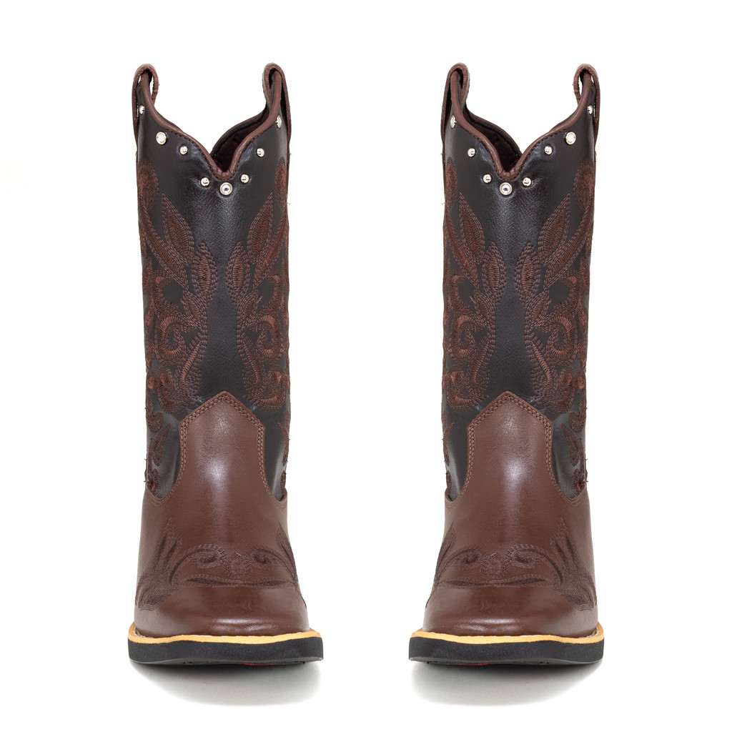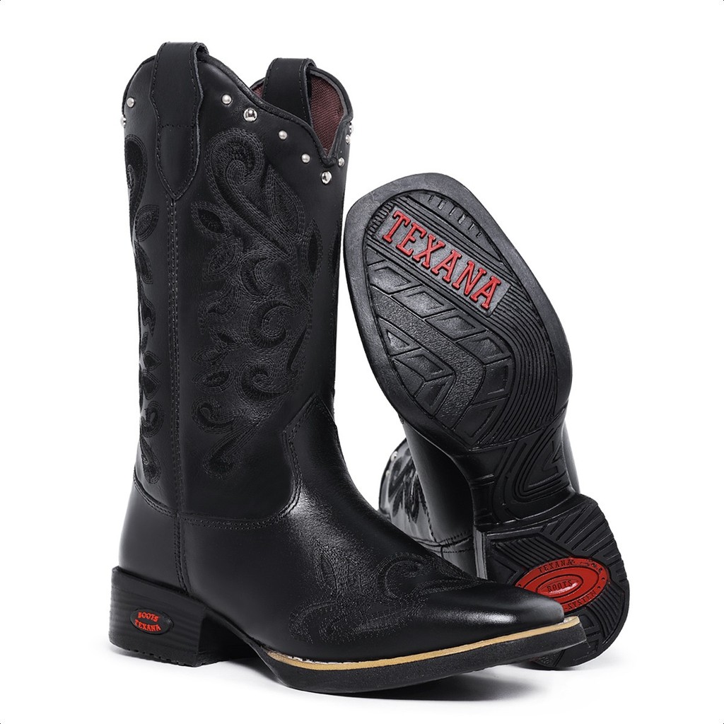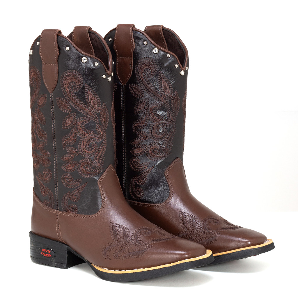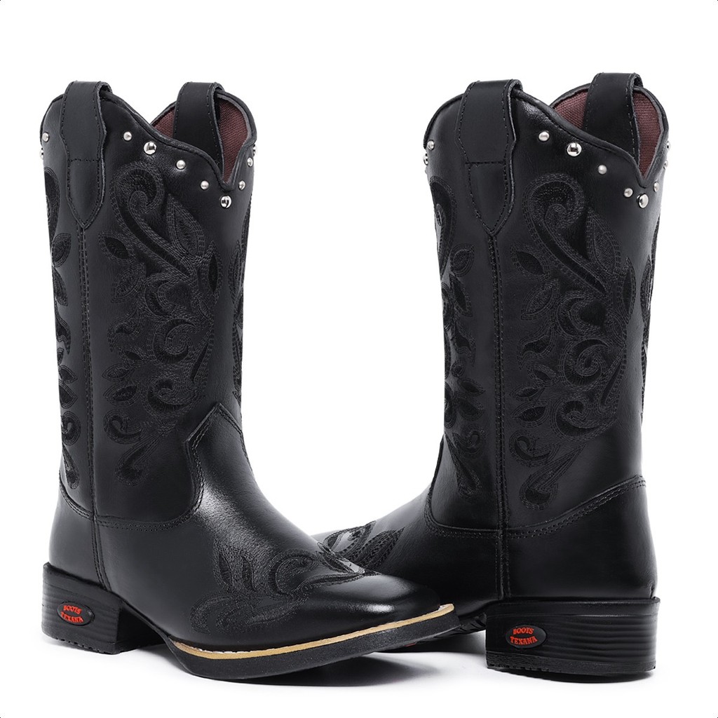 Bota Texana Feminina Couro Legítimo Bordado Tribal Country Chic Moda Sertanejo Conforto Rodeio Style