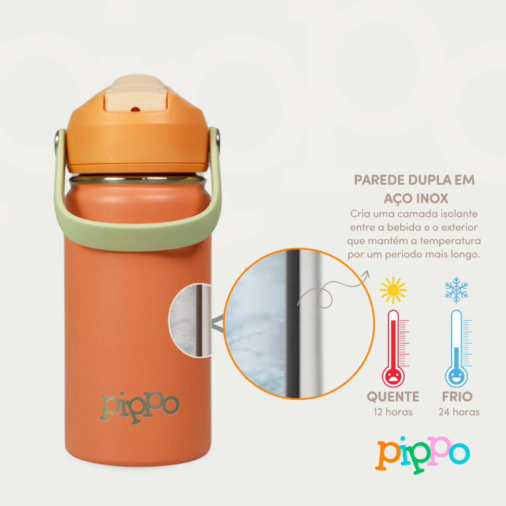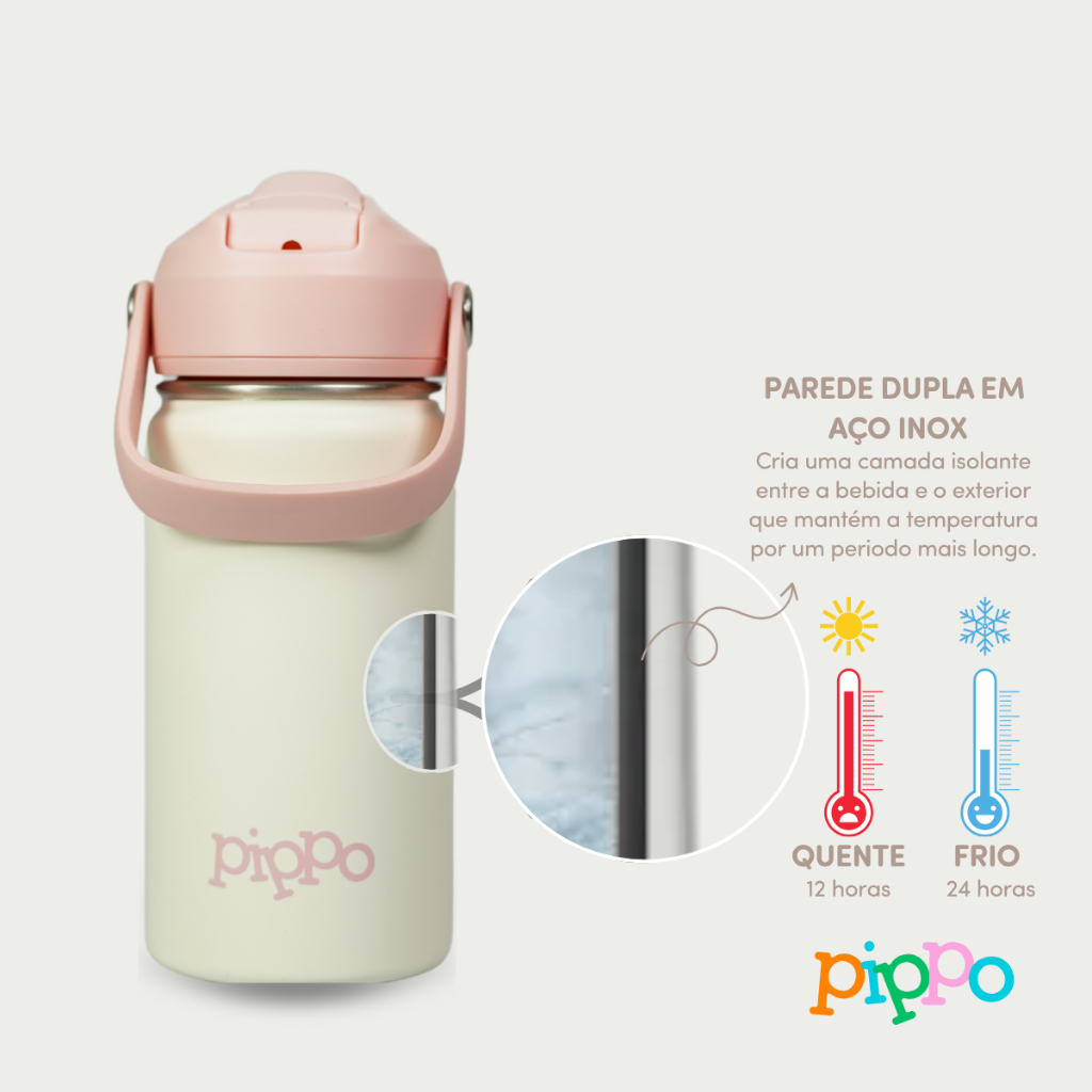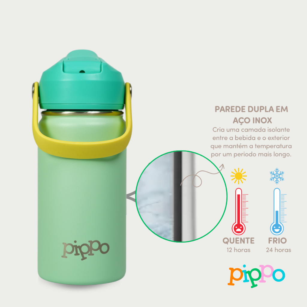Garrafinha Térmica Infantil Parede Dupla Aço Inox com Alça Menino Menina | BPA Free | Com Trava Anti vazamento | Pippo