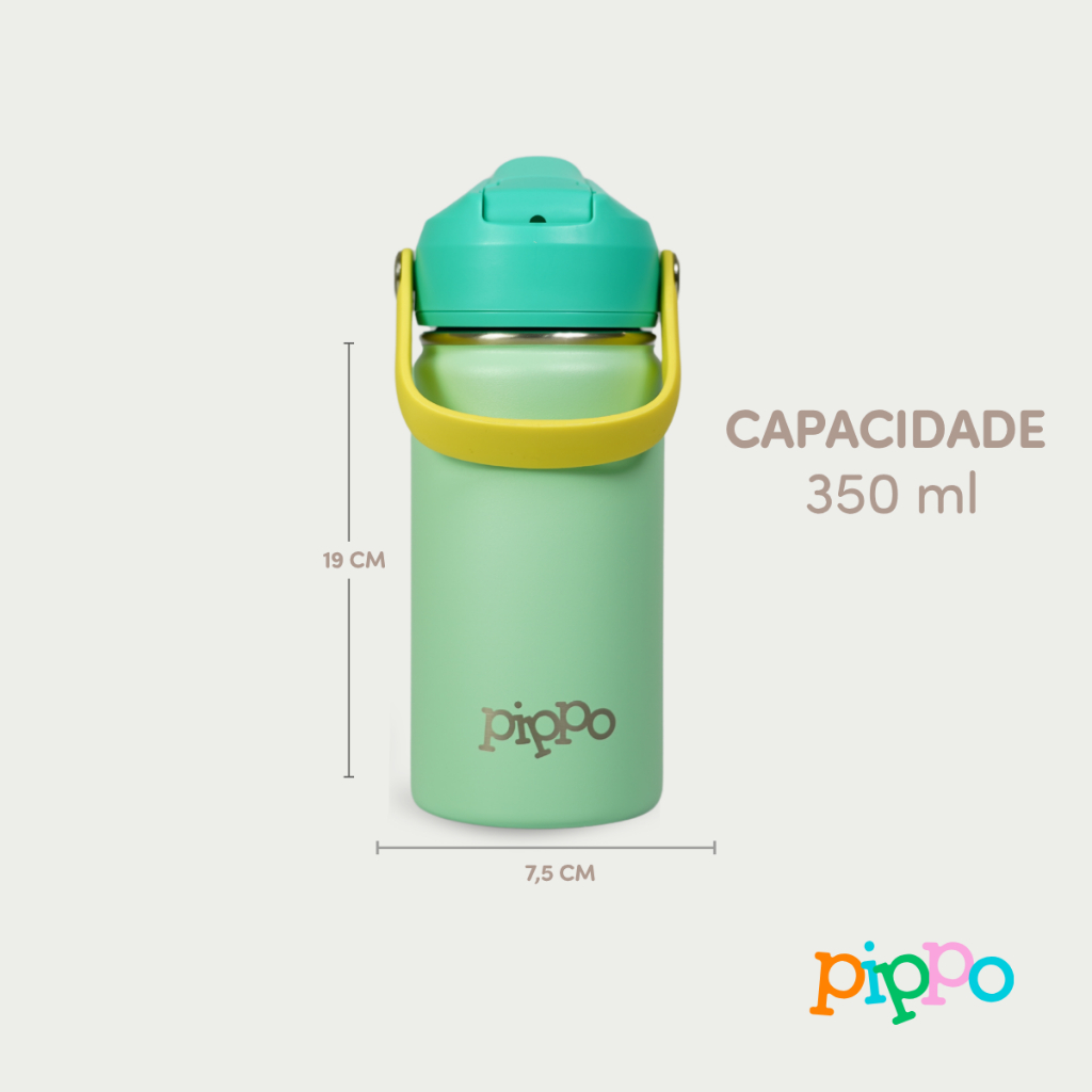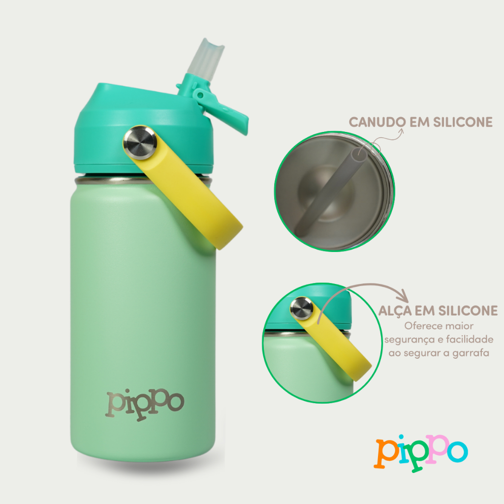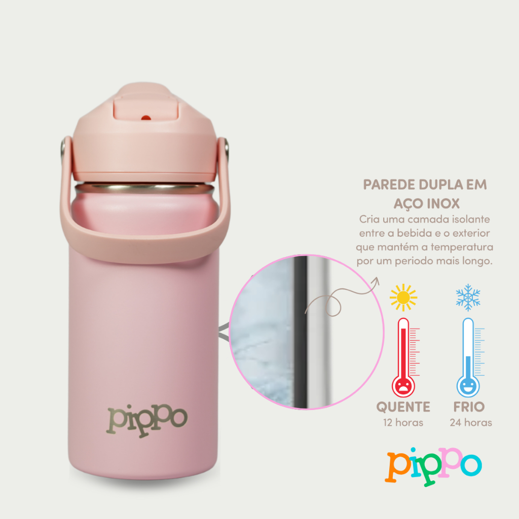 Garrafinha Térmica Infantil Parede Dupla Aço Inox com Alça Menino Menina | BPA Free | Com Trava Anti vazamento | Pippo