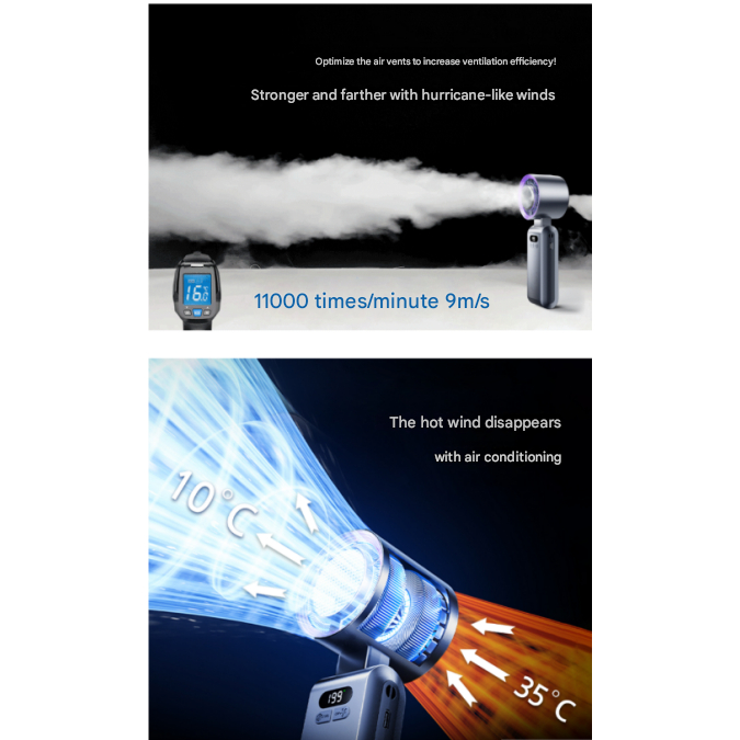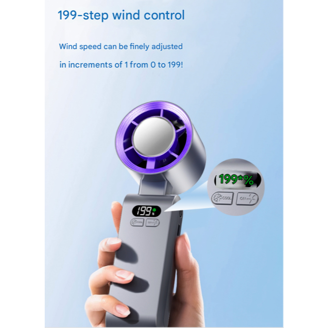 [K-Living] Ventilador De Mão De Carregamento USB Com Controle De Fluxo De Ar De 199 Níveis De Resfriamento Rápido Portátil