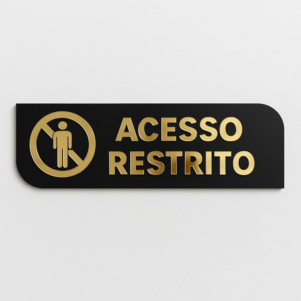 Placa de Sinalização Acesso Restrito em MDF e Acrílico espelhado Dourado