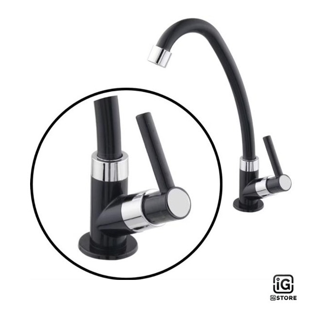 Torneira Cozinha Mesa Bica Móvel Alta 1/4 de volta Abs Cor Preta