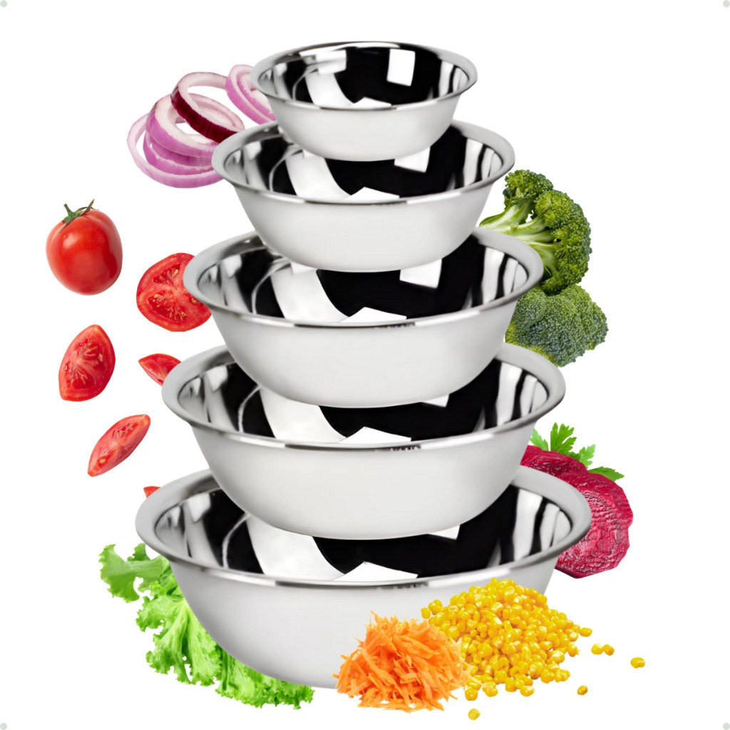 Kit 5 Tigelas De Aço Inox Multiuso – Bowl Premium Saladeiras