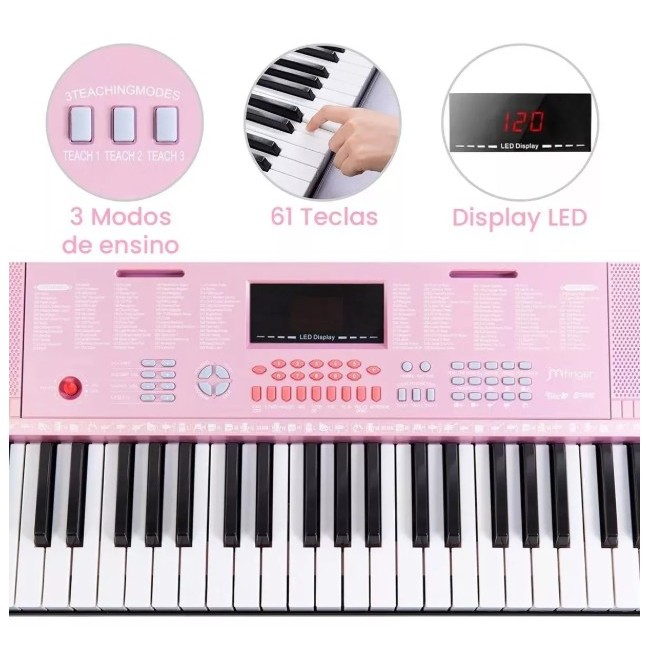 TECLADO MUSICAL 300 TIMBRES 300 RITMOS, 3 MODOS TEACHING, ROSA, MODELO: M-T1280PK