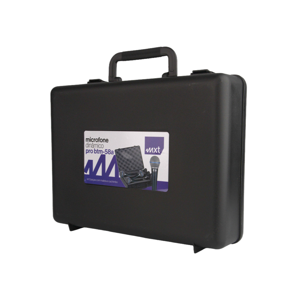 MICROFONE DINÂMICO DE METAL CHUMBO, PROFISSIONAL C/CHAVE - 3 PÇS - PRO BTM-58A