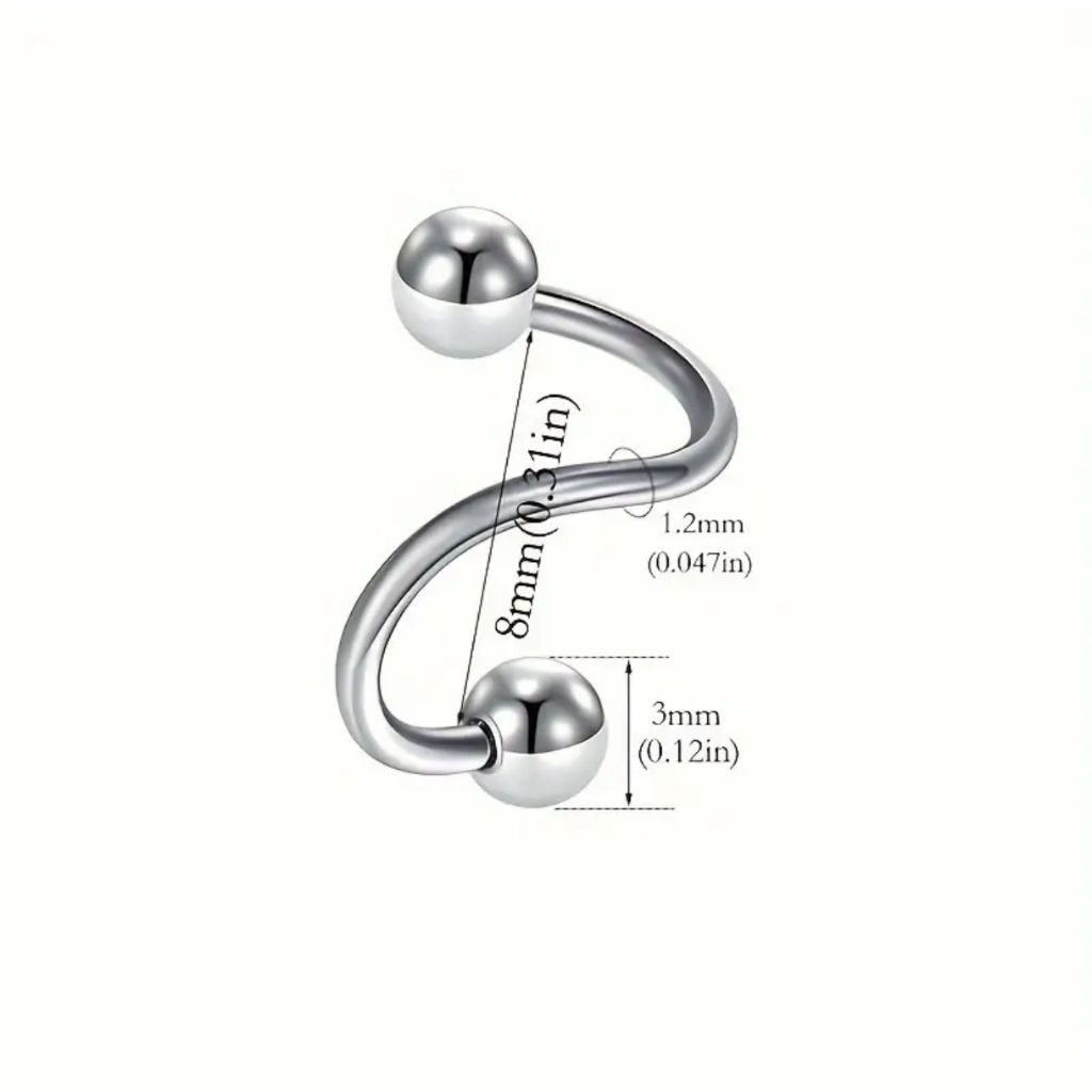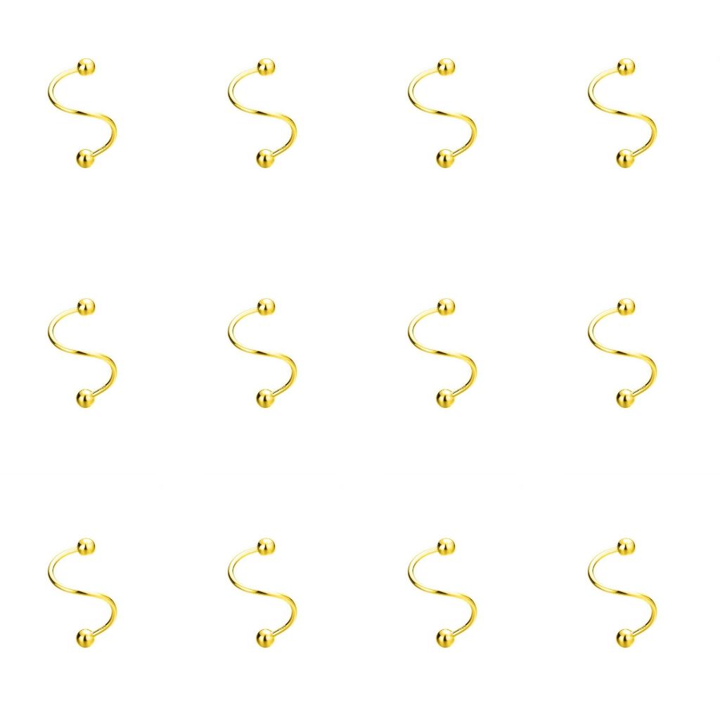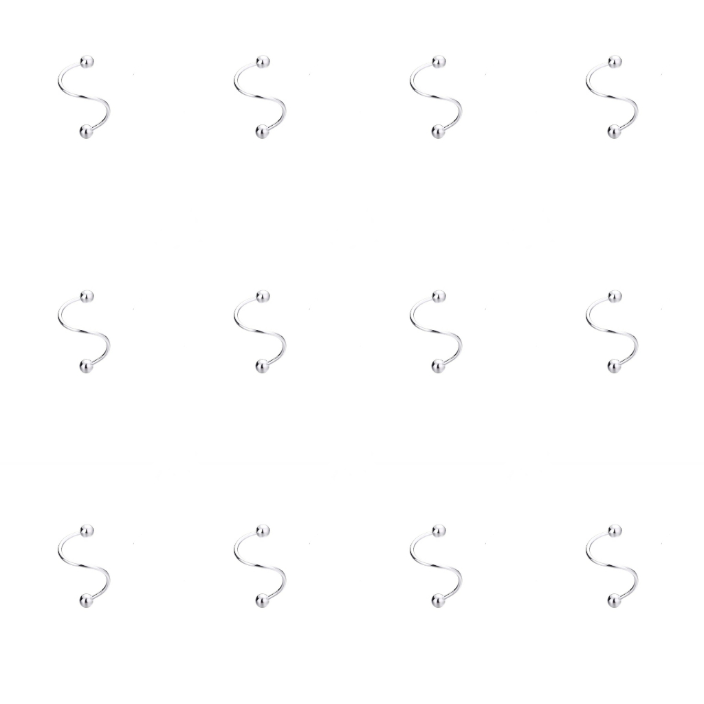 Kit 12 Piercing Espiral Prata Twister Aço Cirúrgico Boca/orelha/cartilagem/septo/hélix/nariz/tragus