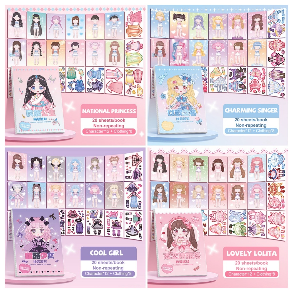 Livro de Figurinhas de Boneca de Papel Livro de Figurinhas para Vestir o Corpo Inteiro Livro de Figurinhas de Maquiagem