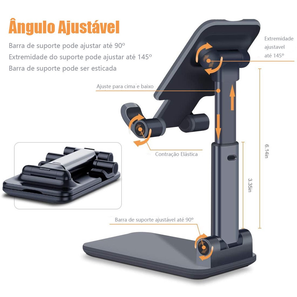 Suporte Giratório Dobrável para Celular Tablet e Jogos PS2 com Base Estável