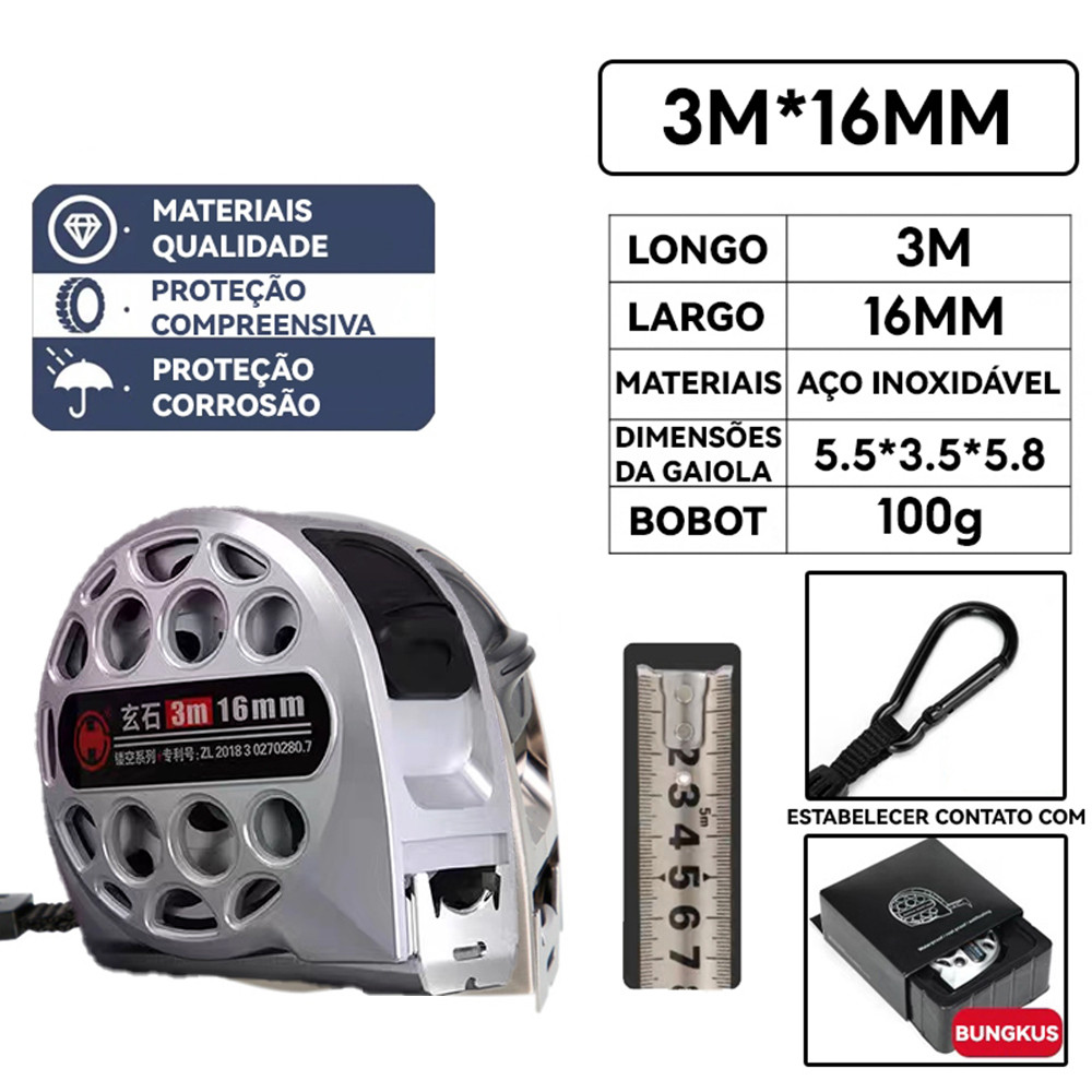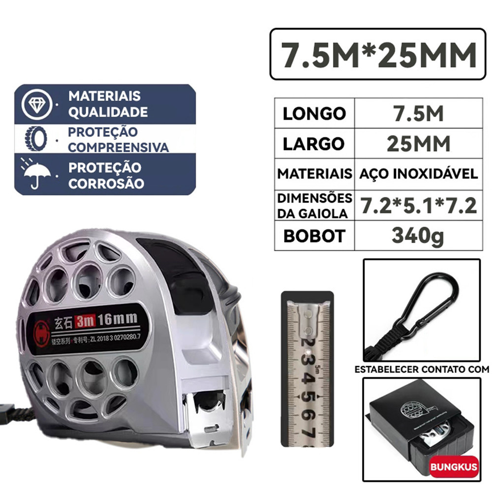 Fita Métrica Aço Reforçado Impermeável Resistente Quedas Precisão Obra Uso Doméstico