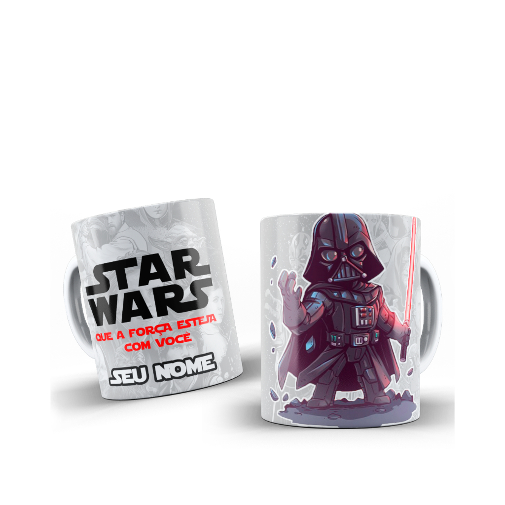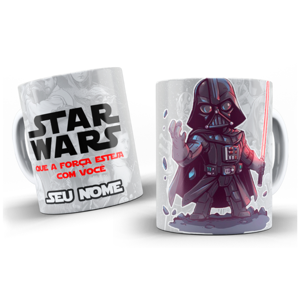 CANECA DARTH VADER STAR WARS PERSONAGENS PORCELANA OU PLASTICO NOME CAFE CHA SUCO XICARA COPO FOTO