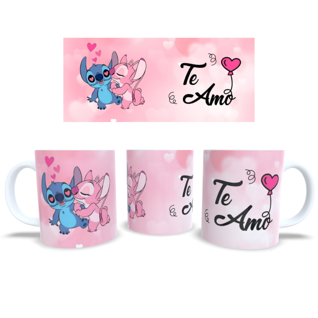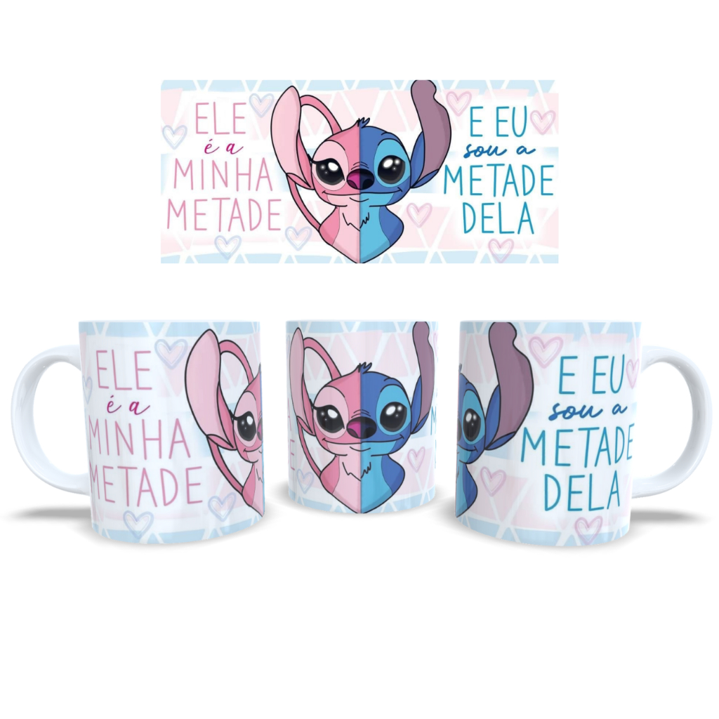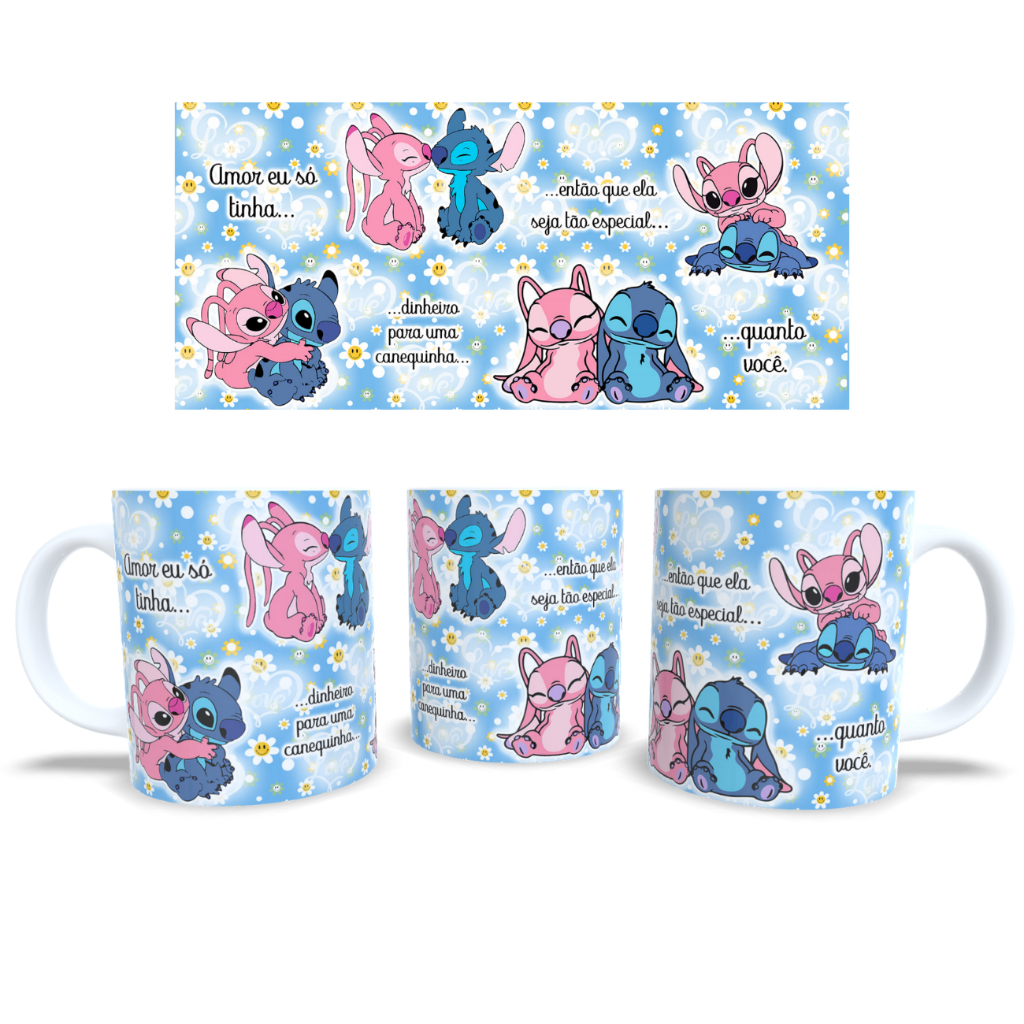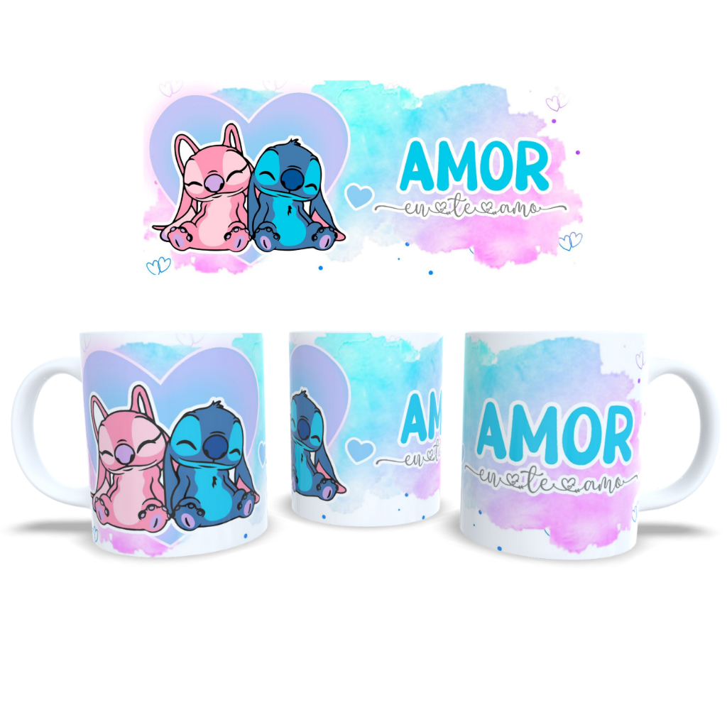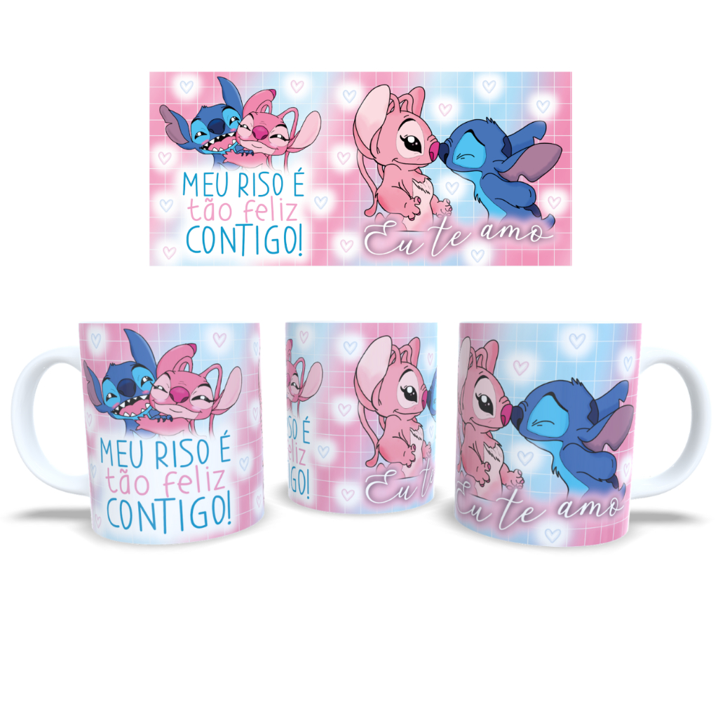 CANECA STITCH CASAL NAMORADO TE AMO FRASES COM NOME PORCELANA PLASTICO PRESENTE CAFE ANIVERSARIO