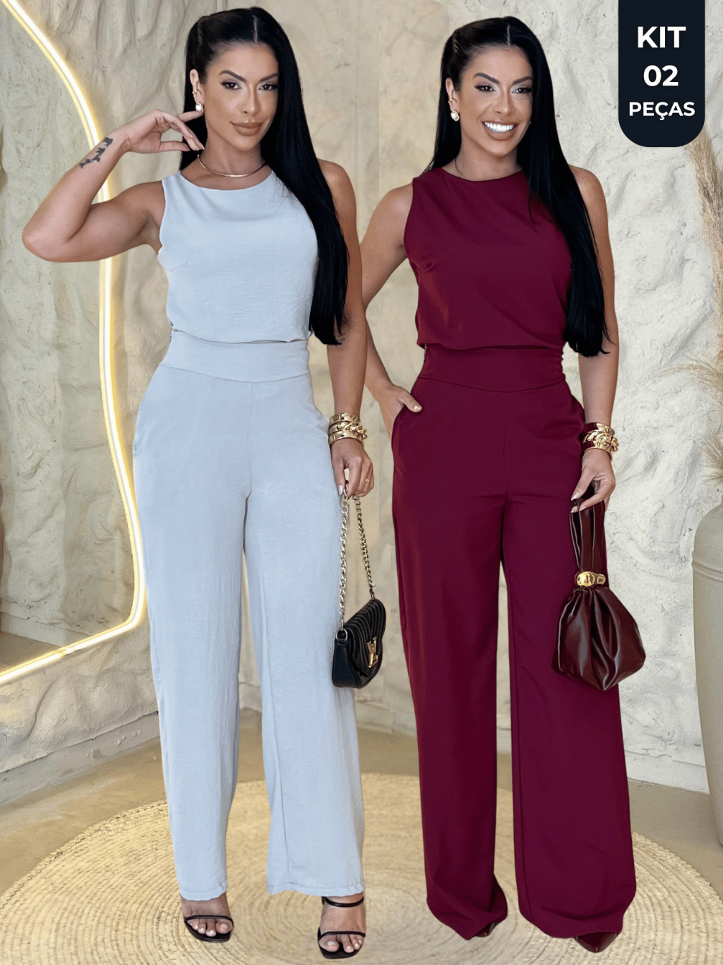 Kit 2 Conjunto Alfaiataria Social Calça e Blusa Regata Feminina P ao GG Moda Elegante