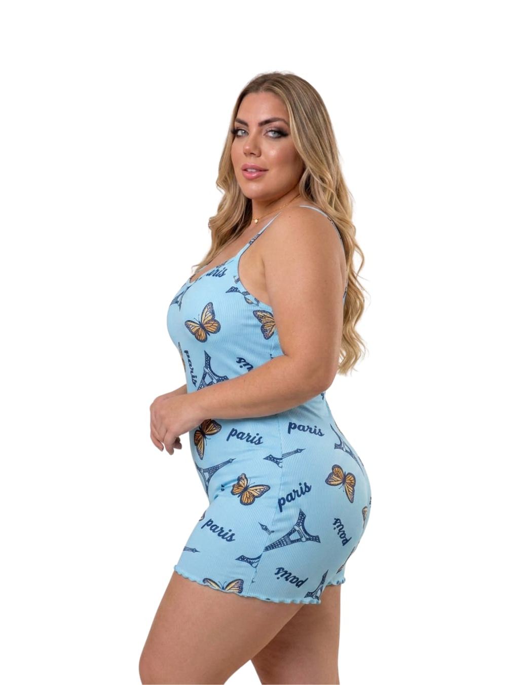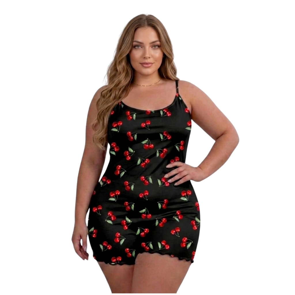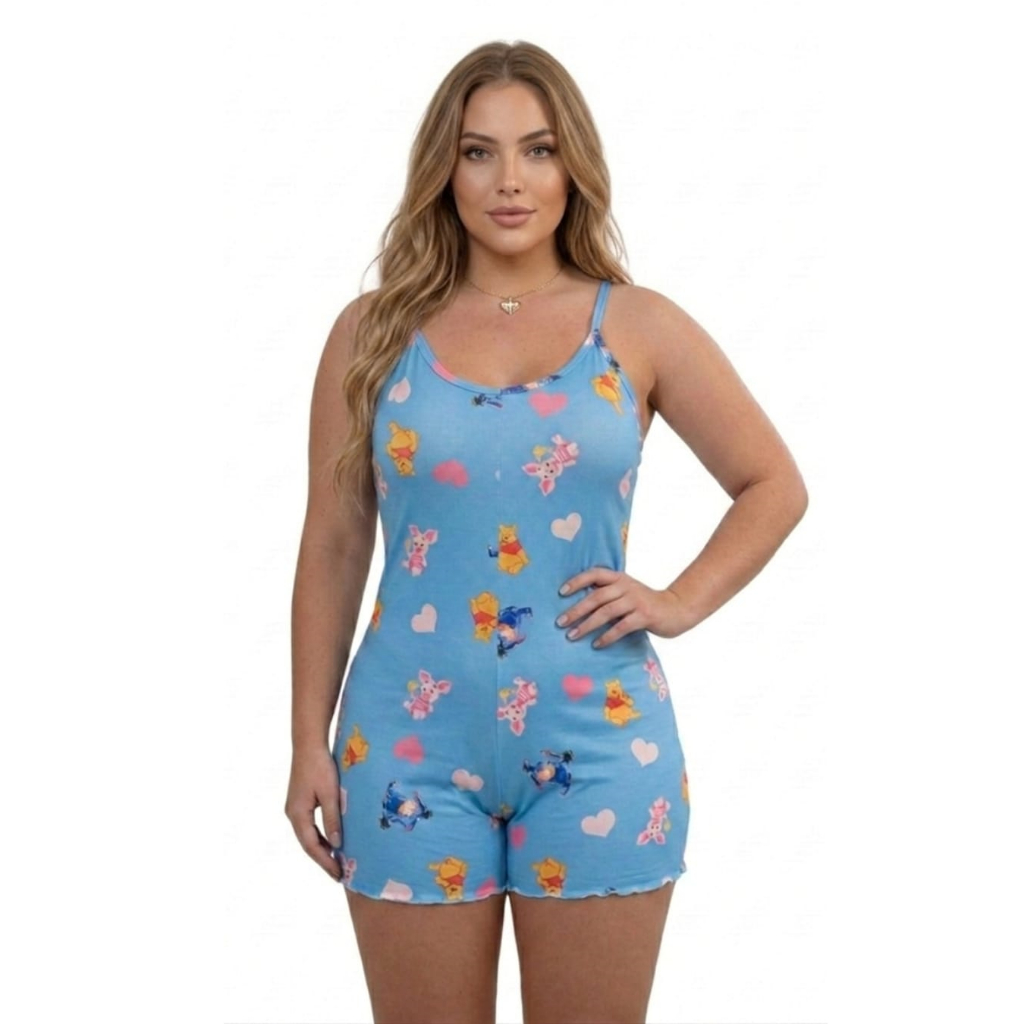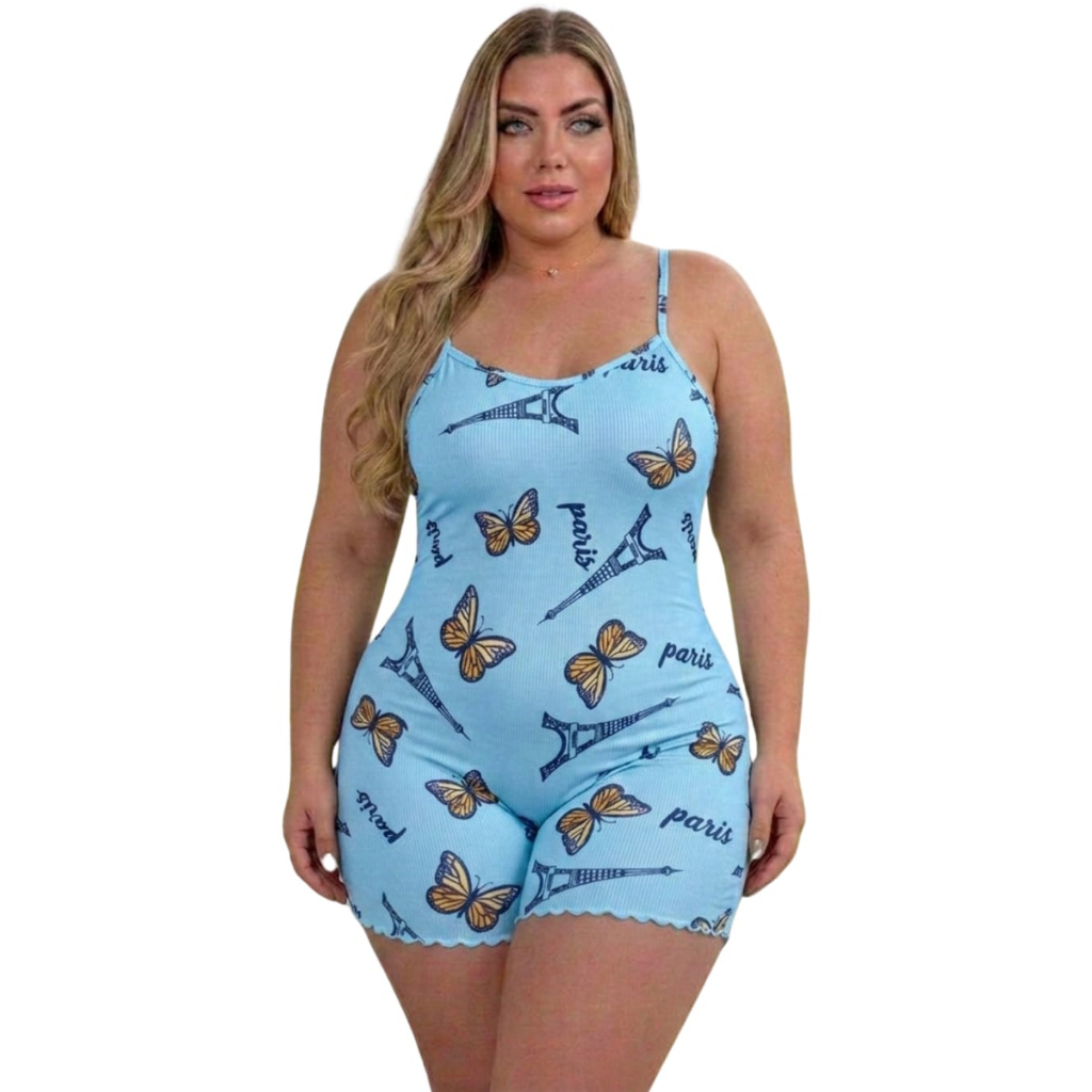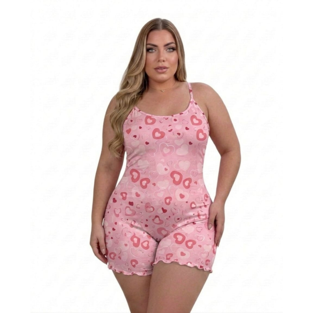Pijama Feminino Macaquinho de Alcinha Plus Size Estampado Malha PREMIUM