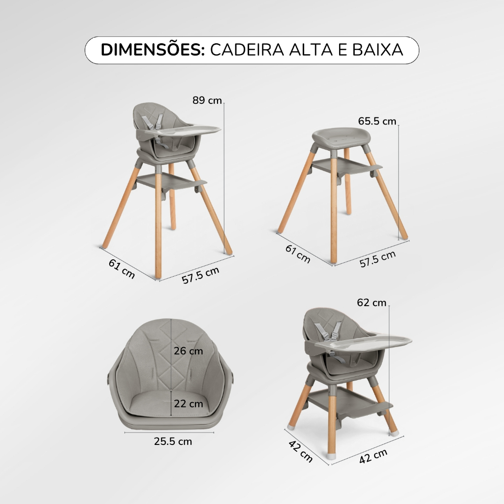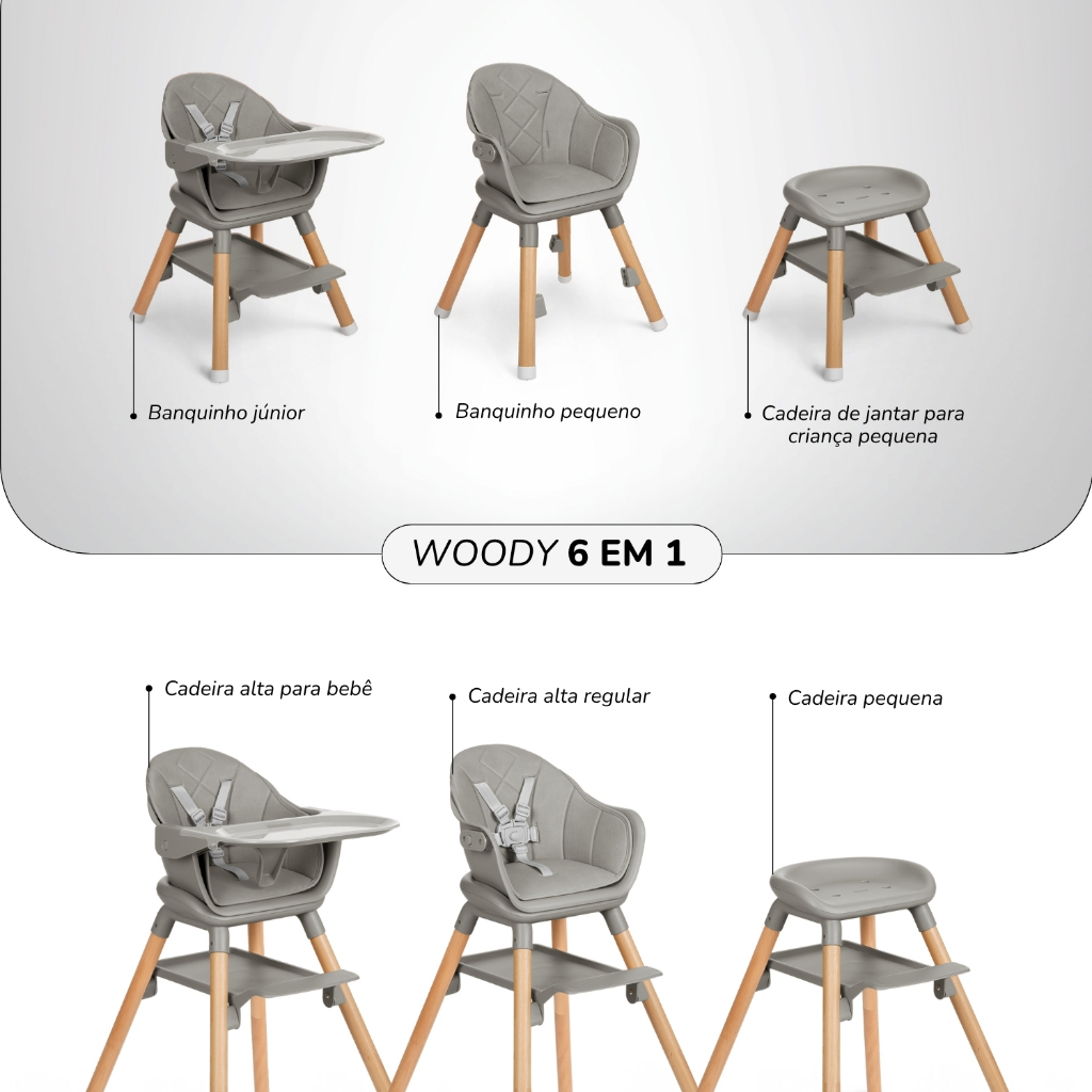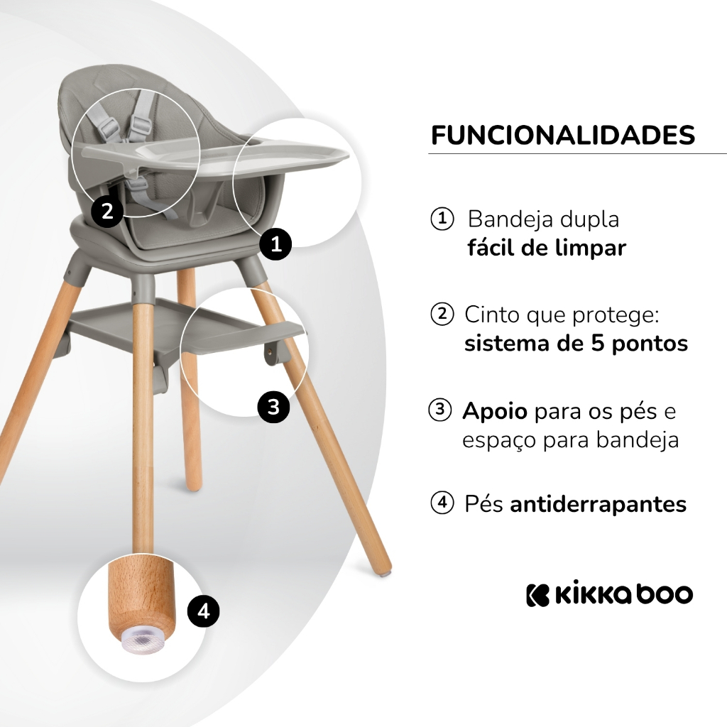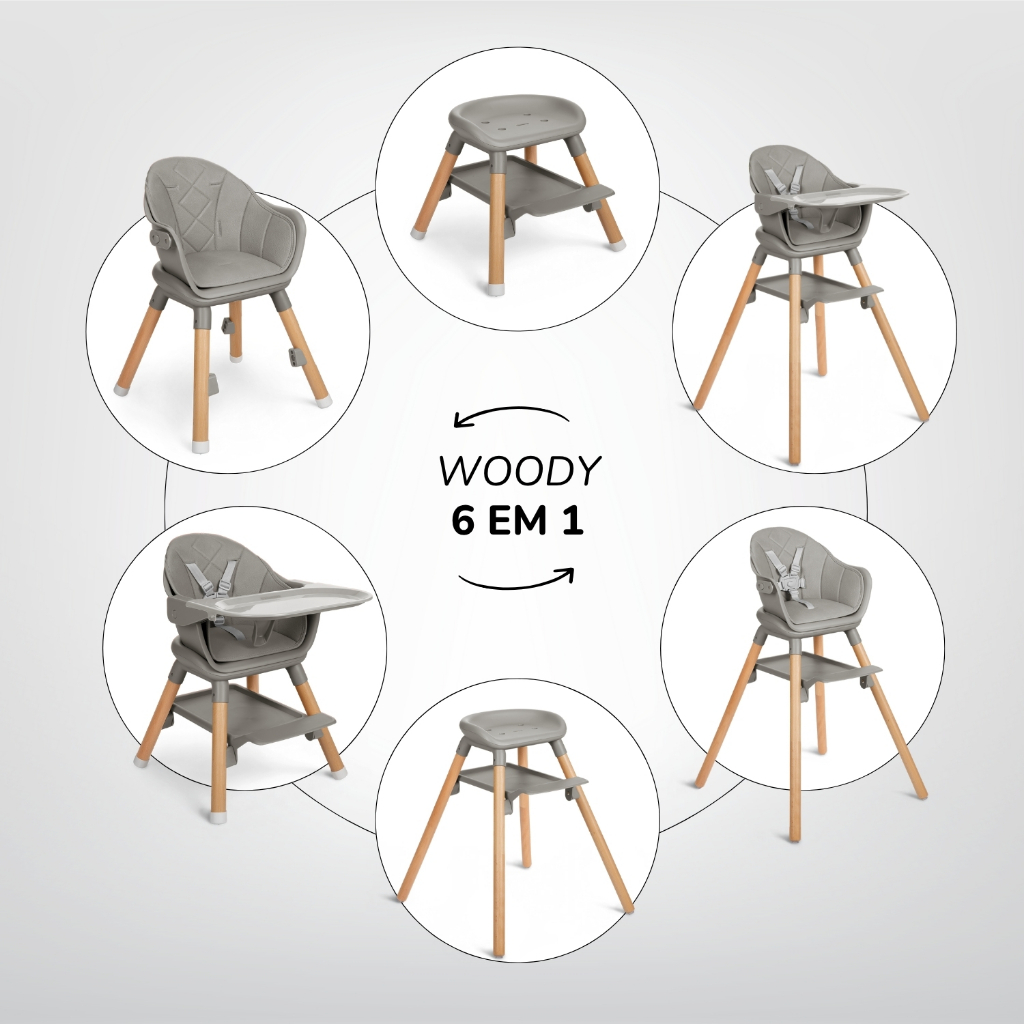 Cadeira de Refeição Infantil 6 em 1 Woody Grey KikkaBoo