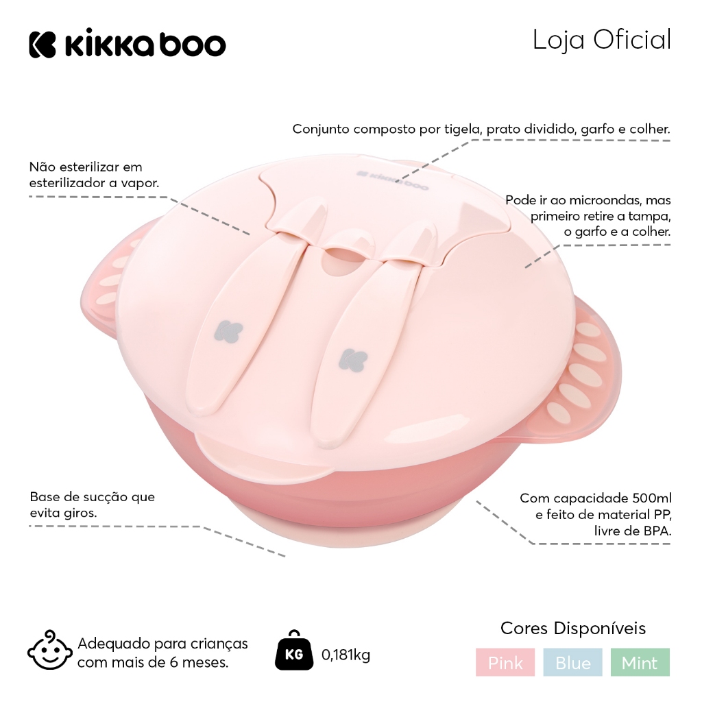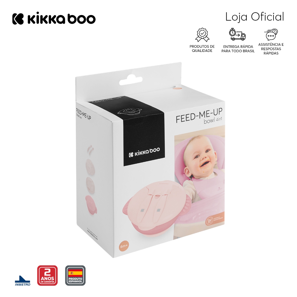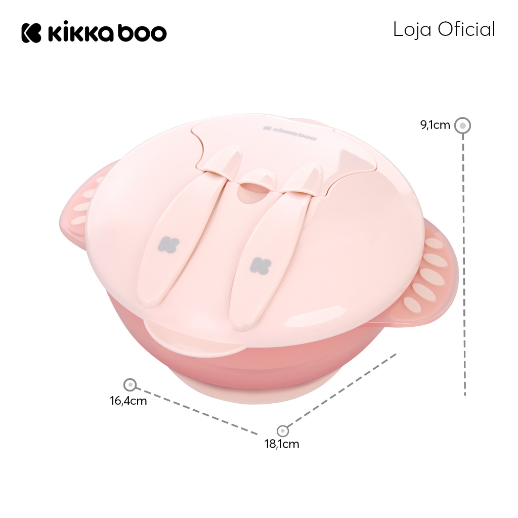Kit Refeição Pote Bowl 4 em 1 Com Ventosa Divisória Talheres e Tampa Feed Me Up Pink Kikkaboo