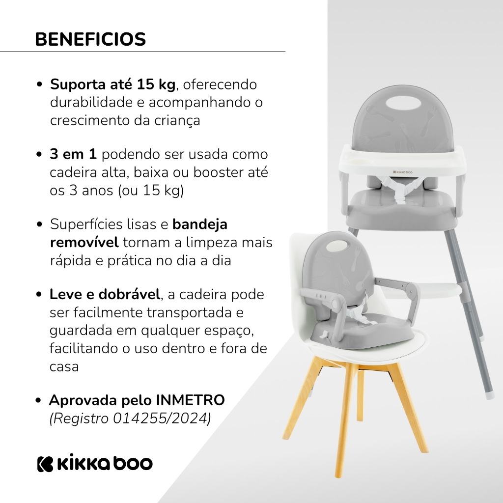 Cadeira 3 em 1 Spoony Grey KikkaBoo - Alta e Booster