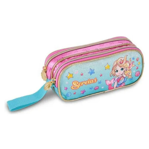 Kit Mochila Rodinha Sereia Lancheira Estojo Menina Clio - Sereia Brilhorsa