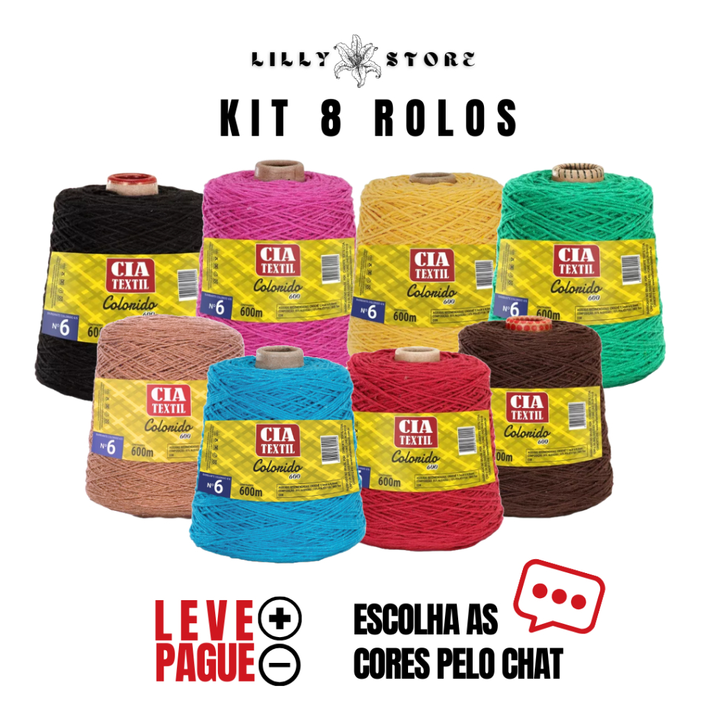 Barbante Fio Numero 6 Croche Trico KIT com 8 Rolos - CIA TÊXTIL