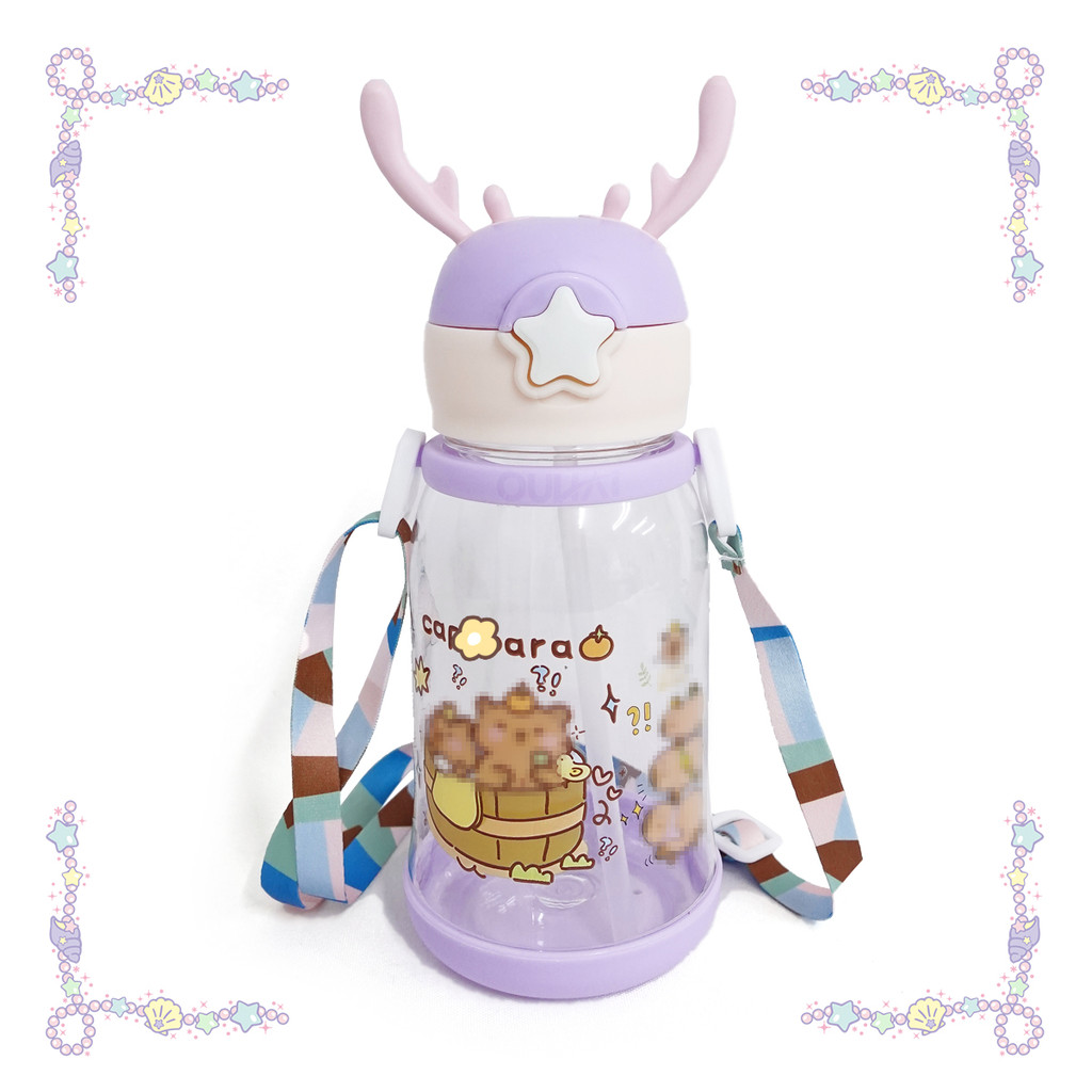 Garrafa Infantil Capivara 600ml com Alça e Canudo – Plástico -- Capivara