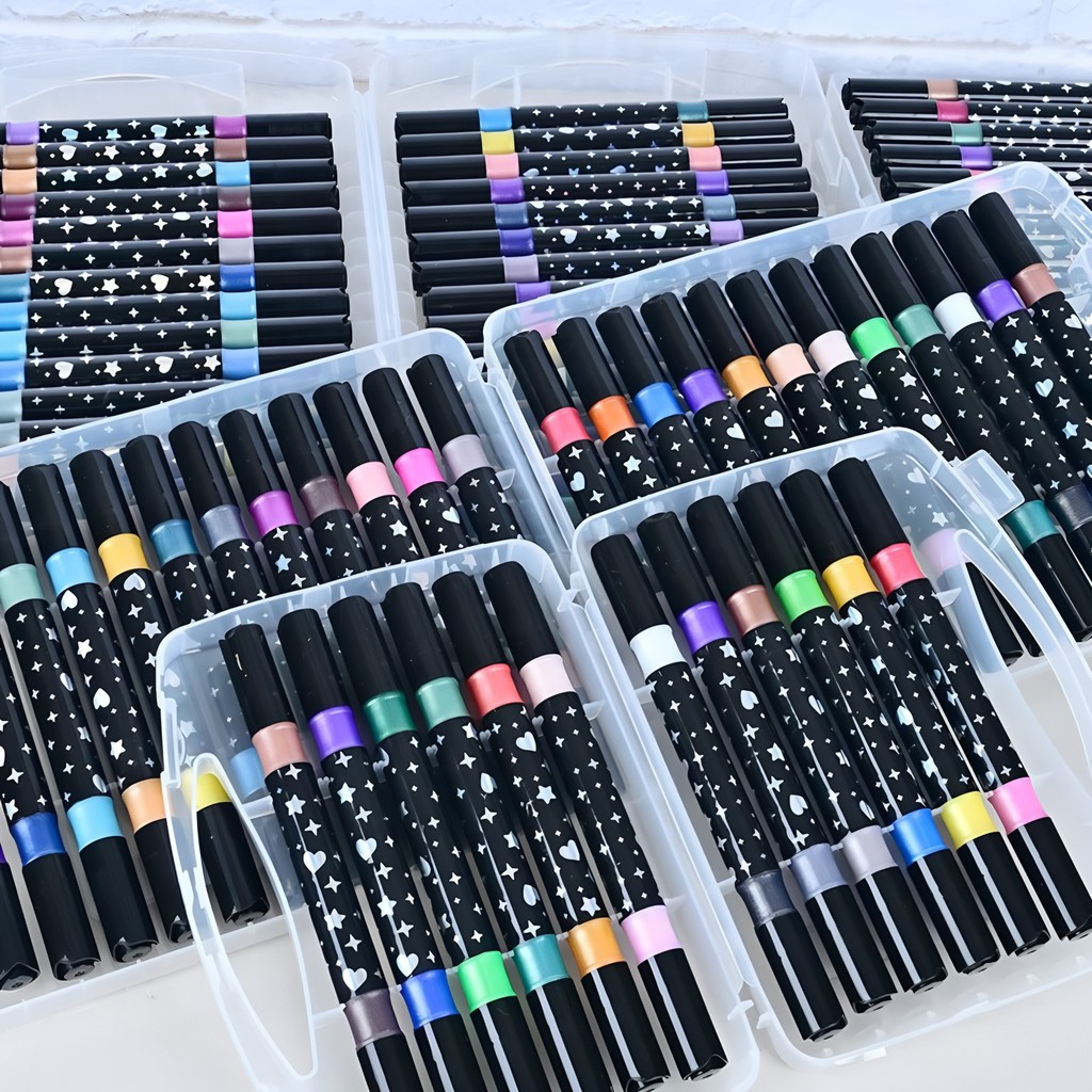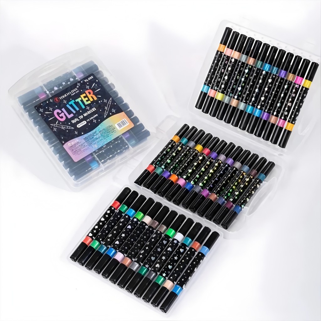 Marcador metálico 12/24/36/48/60 caneta de glitter de cabeça dupla marcador de cabeça dupla brilhante