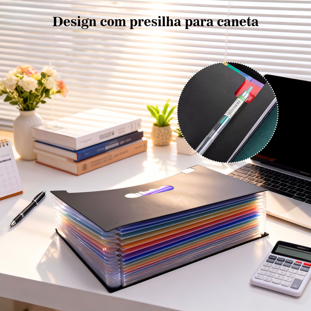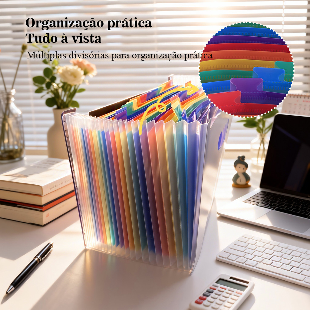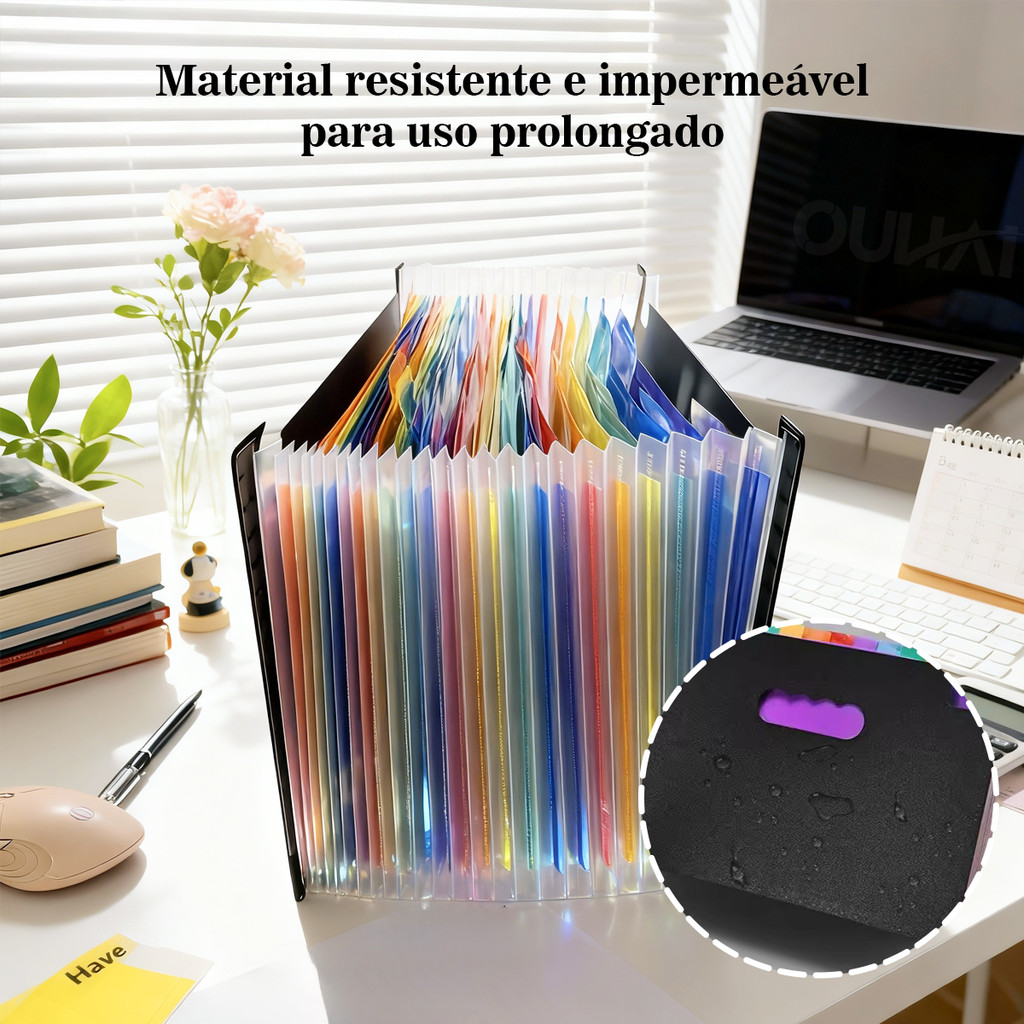Pasta com 24 Divisórias Organizadora de Documentos Sanfonada Multiuso