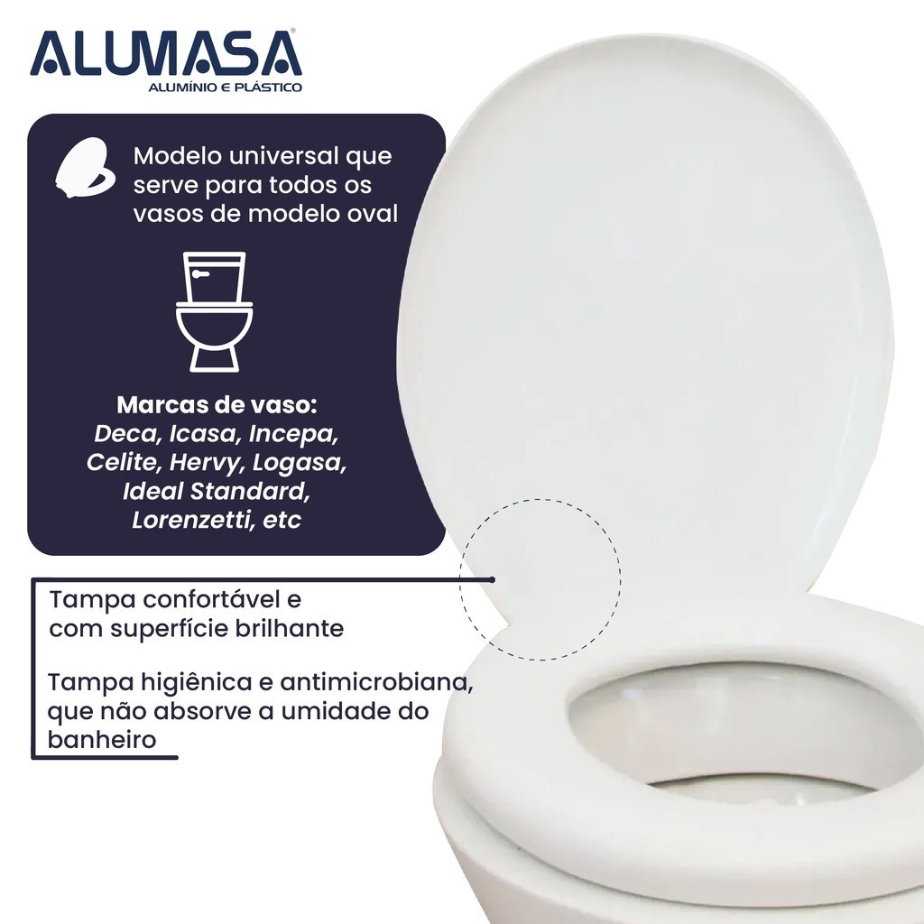 Assento Sanitário Roma Oval Tampa De Vaso Universal (Compatível C/ Todas As Marcas) Alumasa/Herc