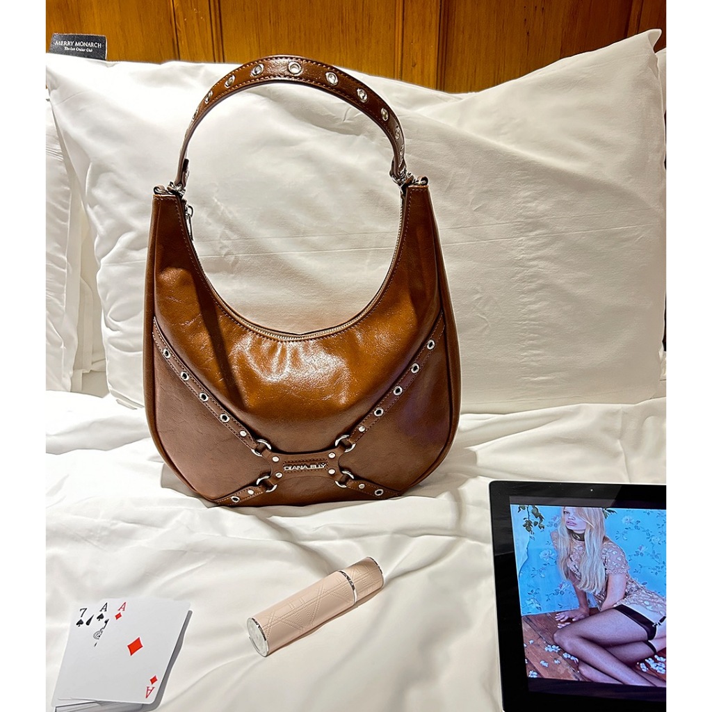 DIANA ELLY/Bolsa Liga/Marrom/# rockchic hobobag