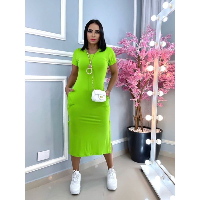 vestido midi de bolso tamanho único g ,veste do 40 só 44, tecido visco laycra