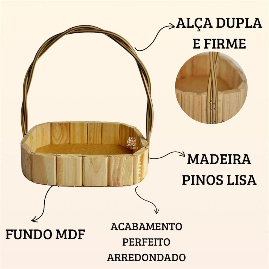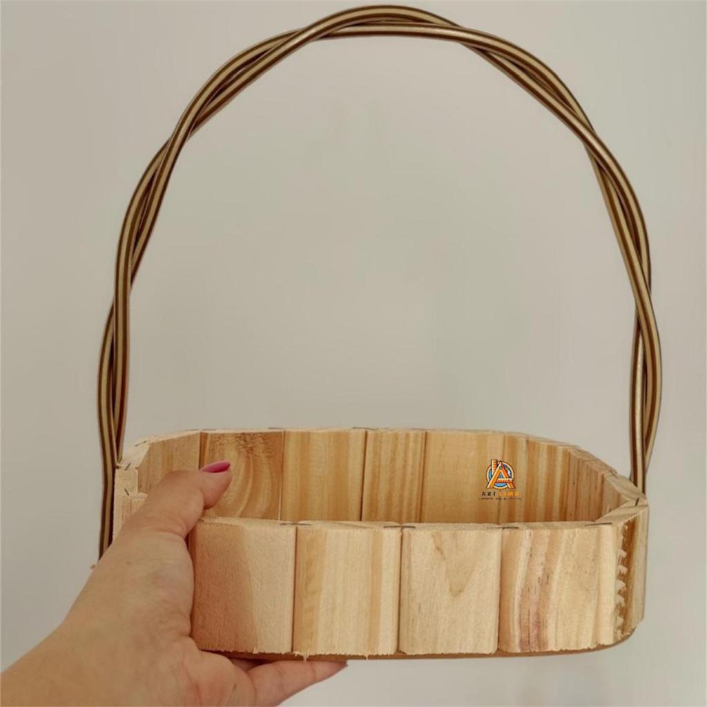 Kit 20 Cestas Madeira Oval com Alça Presente Chocolates Cosmeticos Decorativos Tam 22Cm