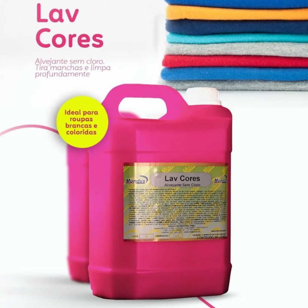 alvejante sem cloro lavanderia profissional Lav Cores Mundus 5 Litros tira manchas altamente eficaz
