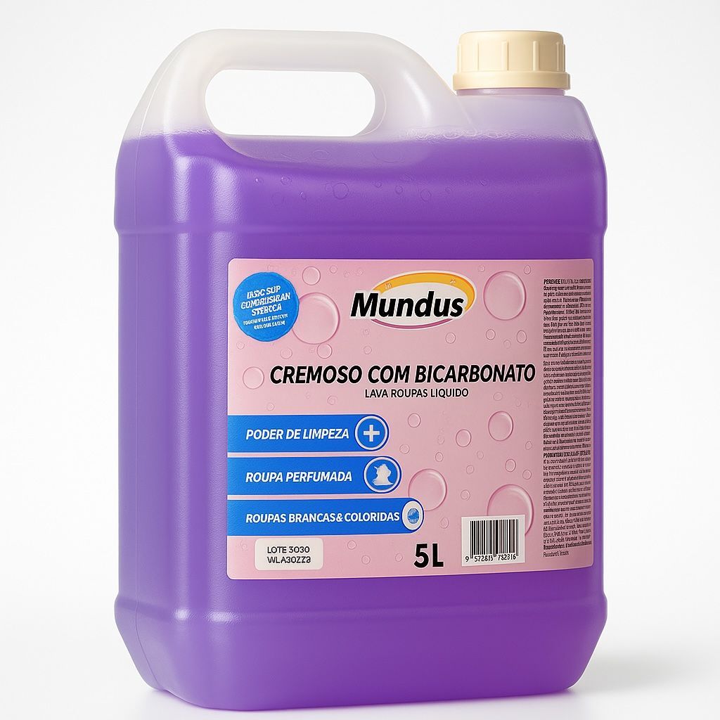 Sabão liquido com bicarbonato de sódio lavanderia profissional lava roupas cremoso 5 Litros