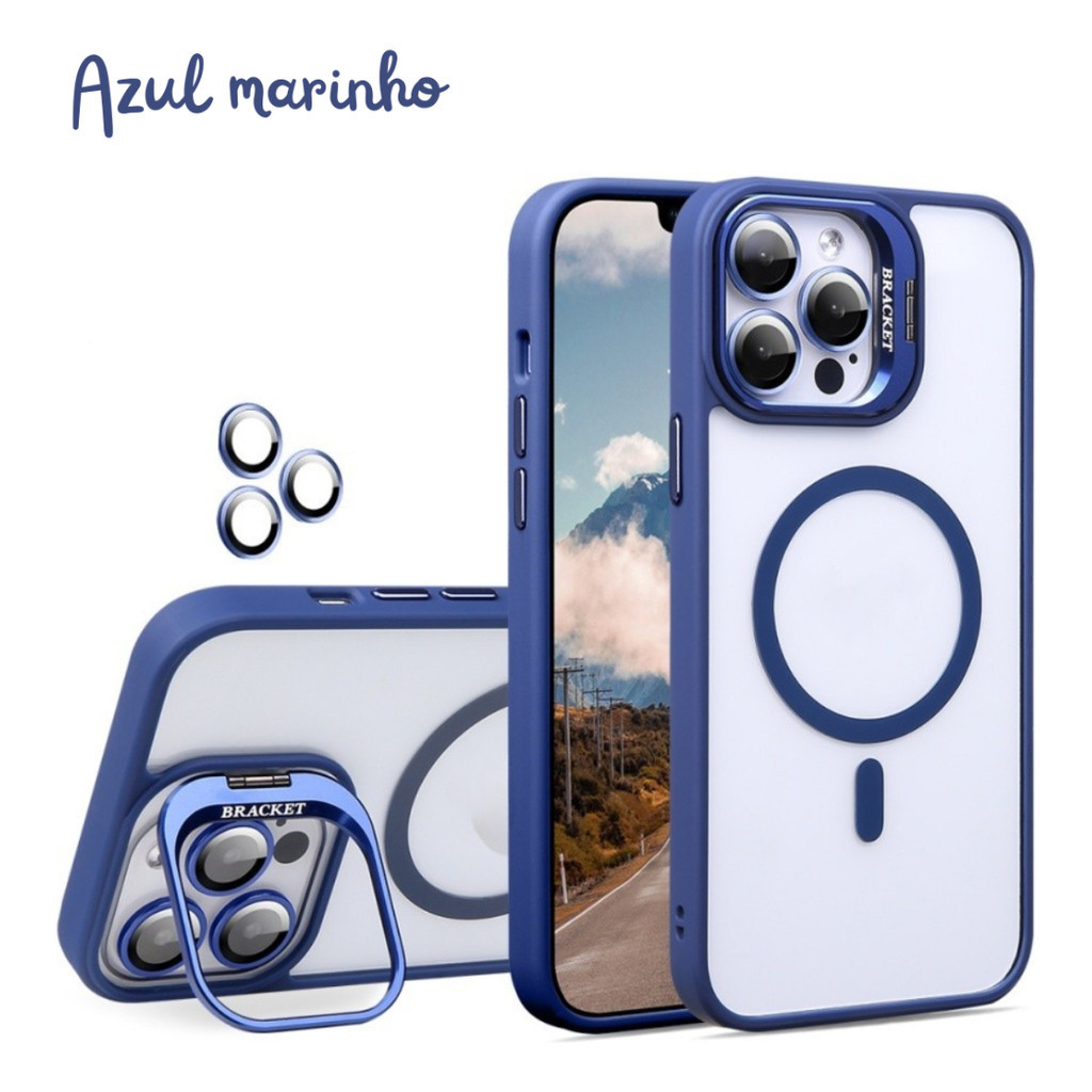 Capinha case magsafe + película proteção lente câmera para iphone 11 12 13 14 15 16 pro plus promax