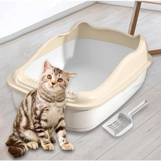 MIW Caixa De Areia Semi Fechada Para Animais De Estimação Pequenos PP Material Anti Respingo Aberto Superior Branco