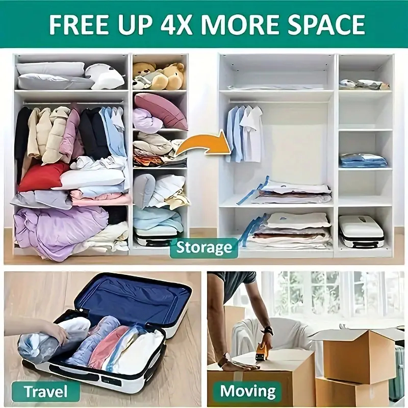 Kit 3/5/10 Saco a Vácuo 40x60 60x80 Organizador de Roupas Mala Viagem Guarda Roupas