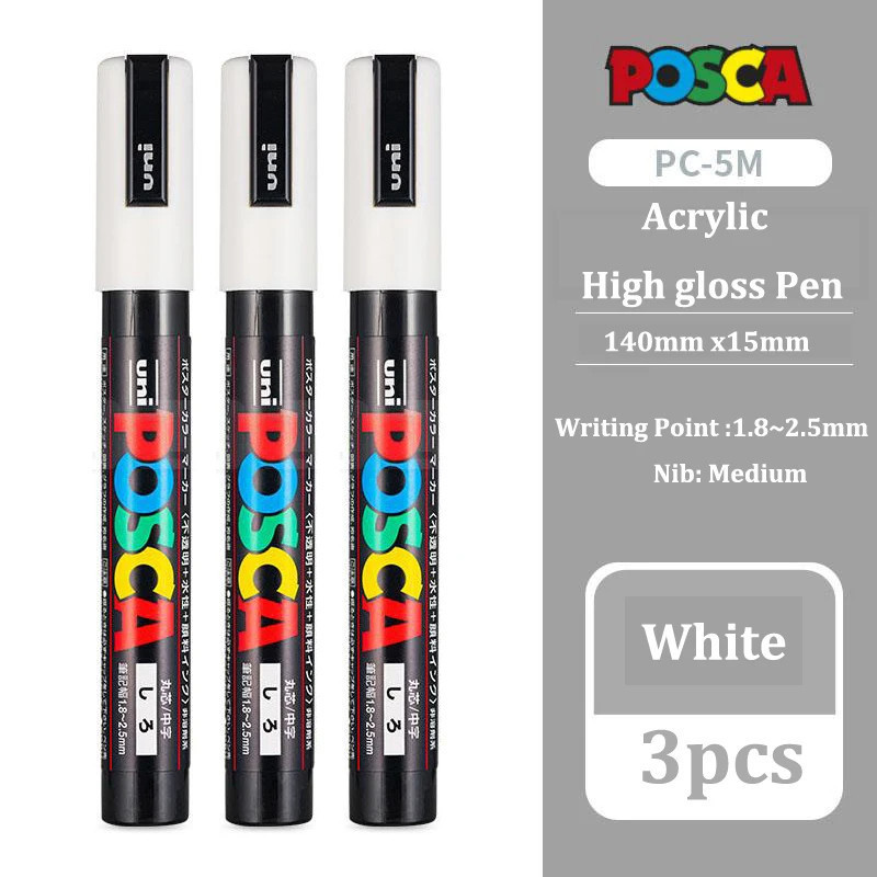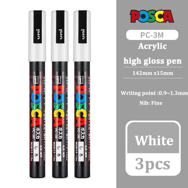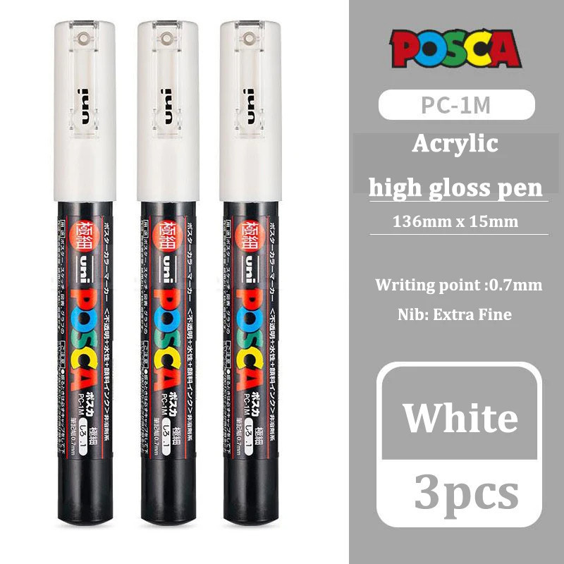 Caneta Marcadora Acrílica UNI POSCA , 3 Peças , Branco , Preto , Rotador permanente , Graffiti , PC , 1M , 3M , 5M , Tec
