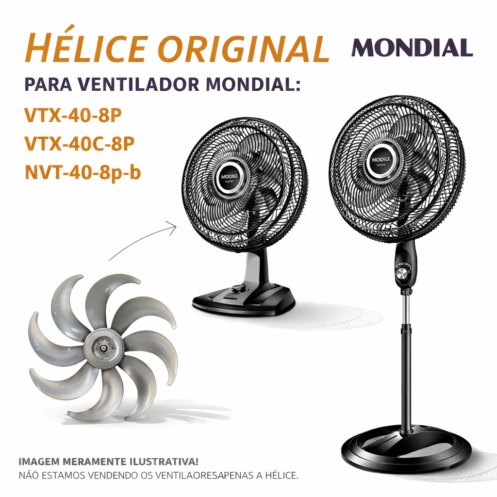 HELICE PRATA VENTILADOR WAP FLOW MONDIAL 40CM 8P ORIGINAL VTX-40-8P