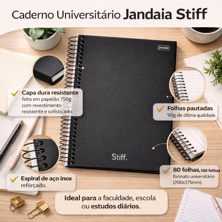 Caderno Stiff Slim Universitário Jandaia 10 Matérias 160 Folhas 2026